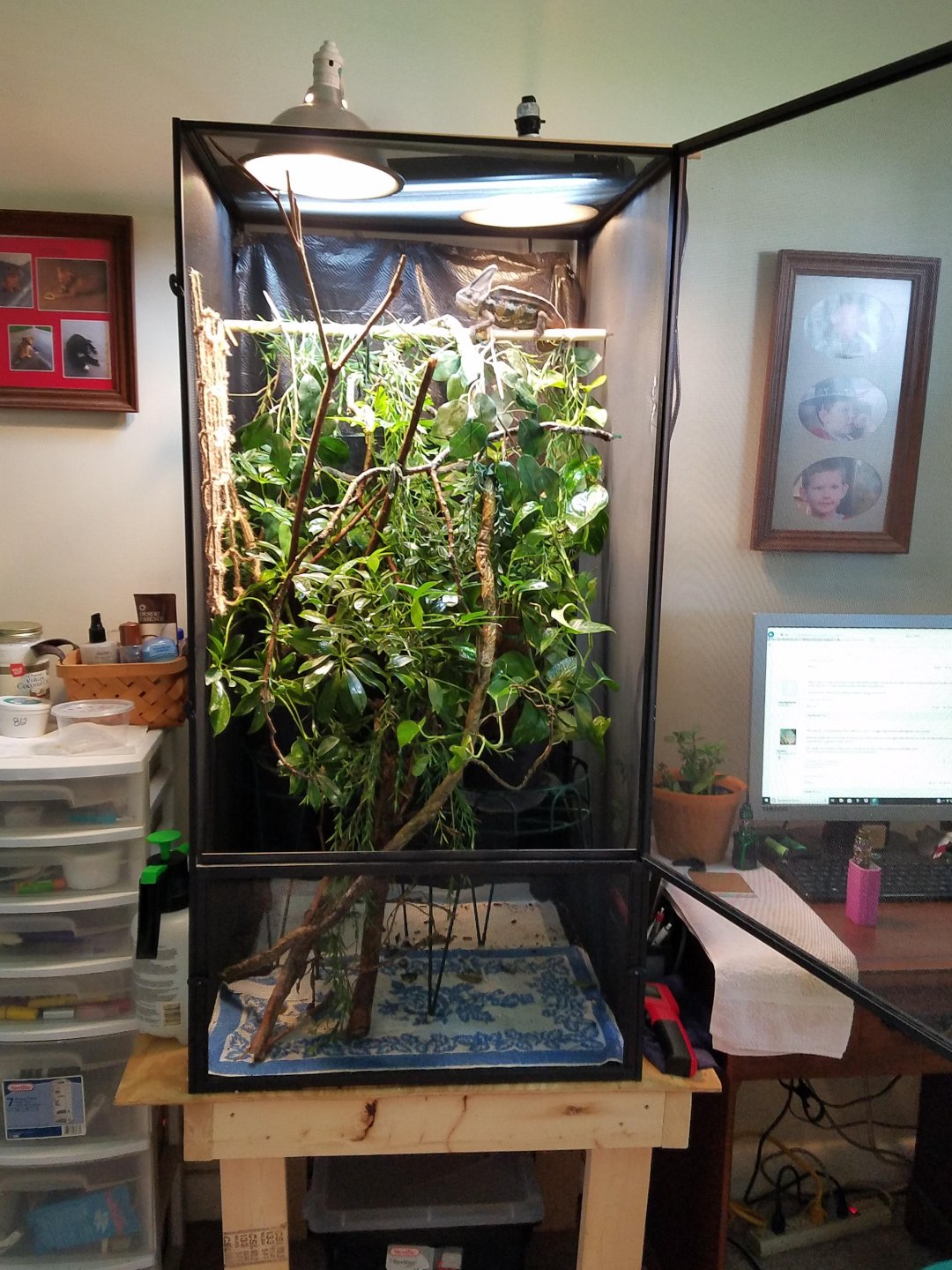 ! Just make sure your veiled can't get too close to the basking bulb in the front (looks like he could climb the branch and get real close). One other tip, it will be difficult to clean the bottom of the enclosure with the branches on the floor. If you can figure out how to suspend them so you can simply remove the towel and replace it easily it will be much simpler to maintain.