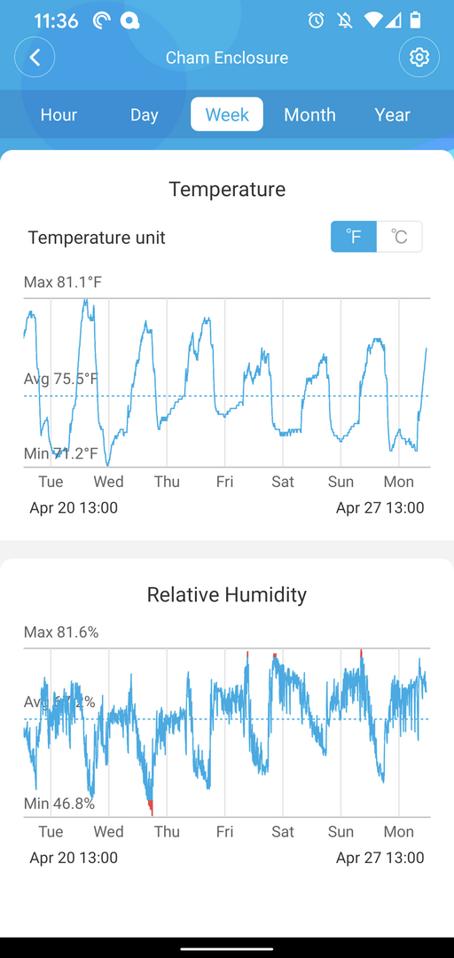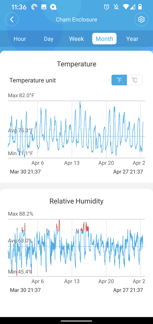 - In the last month, the lowest temp has been 71 degrees, and highest has been 82, per a Govee bluetooth tile. (See screenshots below of a snapshot of the past week and month.)