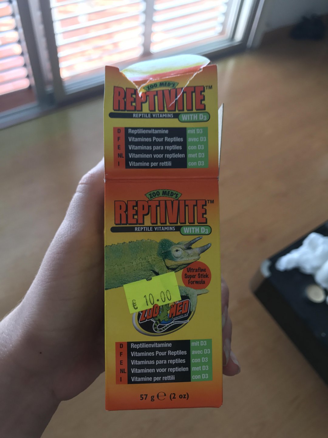 She already eaten 3 crickets today which I was super happy about because I read a lot of hunger strikes for newly purchased chameleons. They were cup fed to her and she seemed to enjoy climbing to get to them and was very used to being cup fed. The only brand of multivitamin that was available at the store was Reptivite which I have read a lot of mixed reviews about. Dusting and being sure I am giving her what she needs is the thing I am most nervous about as I am new to owning a chameleon (but have been researching and wanting one for about 4 years now.) I chose to go ahead and get her the one with D3 and ask the forum what other ones to get from here, that way I'm not over spending trying to hunt down the right ones here on the island. I have crickets and I am going to start gutloading them tonight with things other than the carrots the pet store was feeding them. I am open to any suggestions in terms of dusting schedule, and what to feed the crickets.