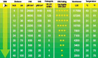 @Ruthless put up for you. In fact by 12 inch down from the bulb I was getting a .7 UVI. They do not give you specifics like if these are levels through screen or not. The other thing I do not like about the bulb you want to use. Is it focuses the UVB in one area.