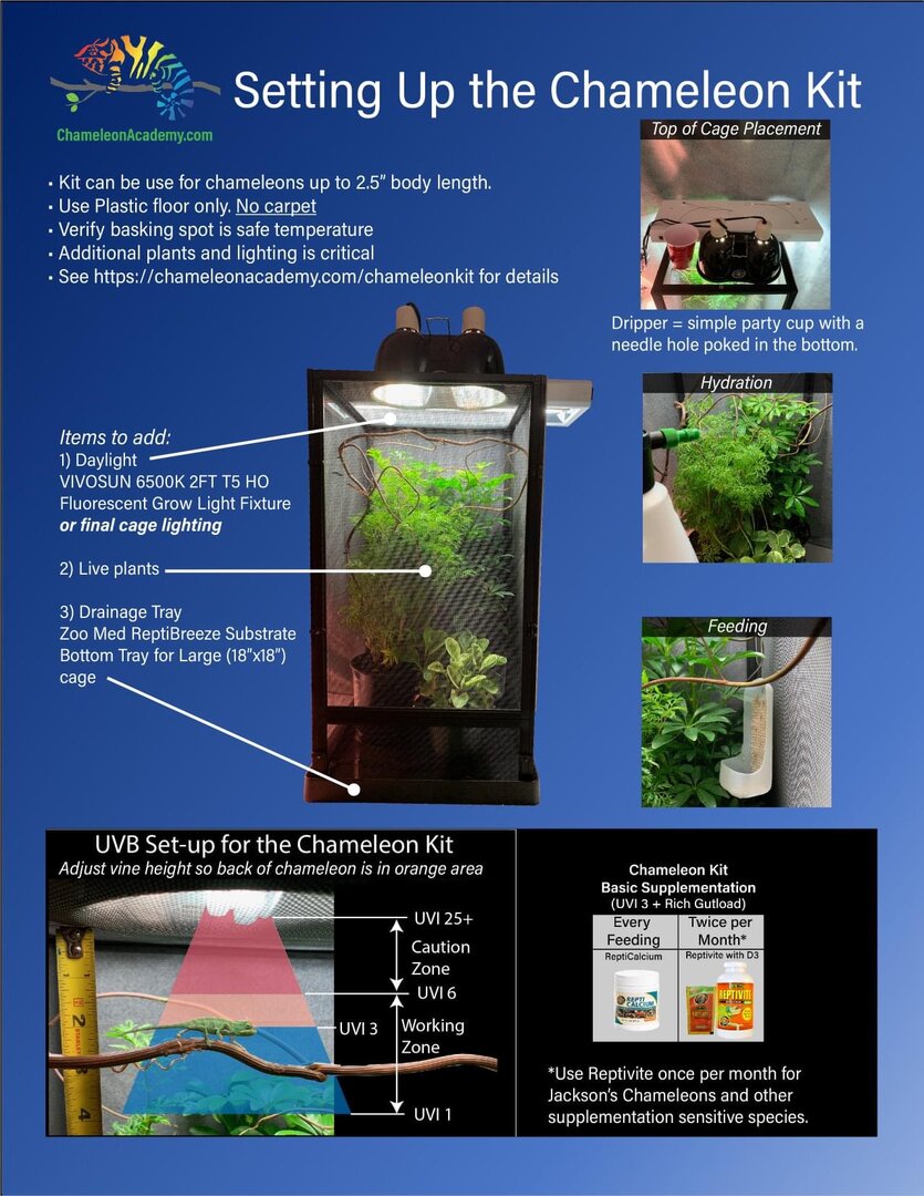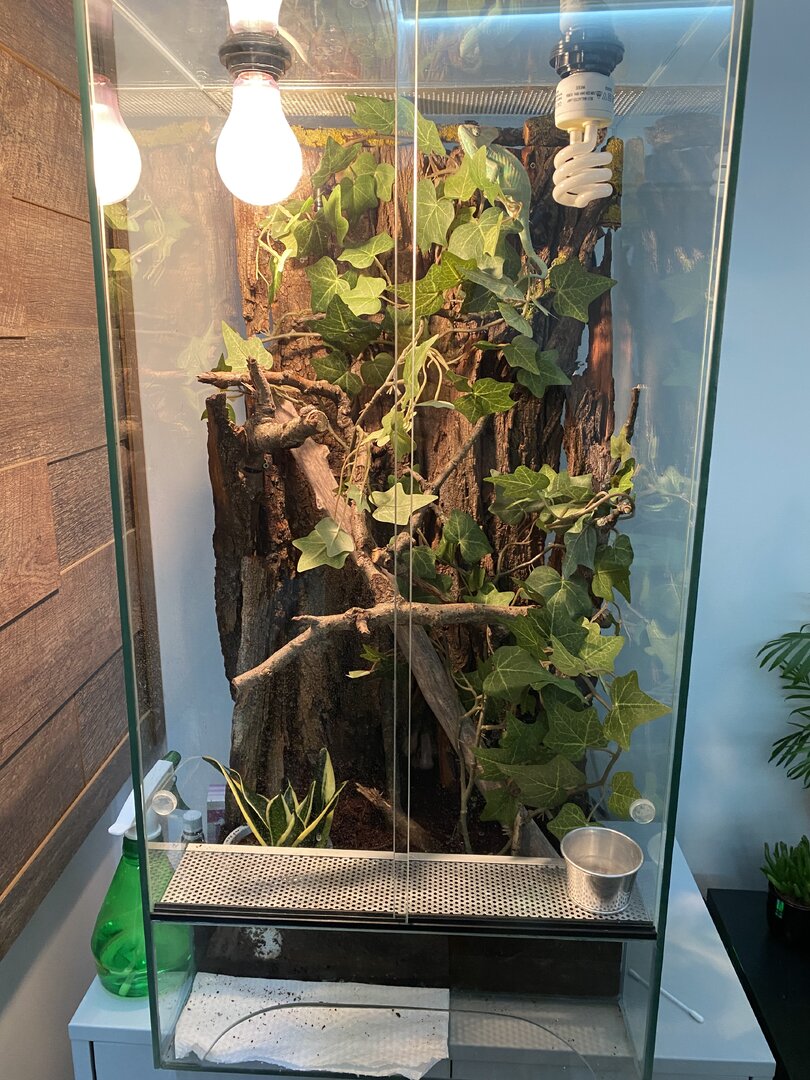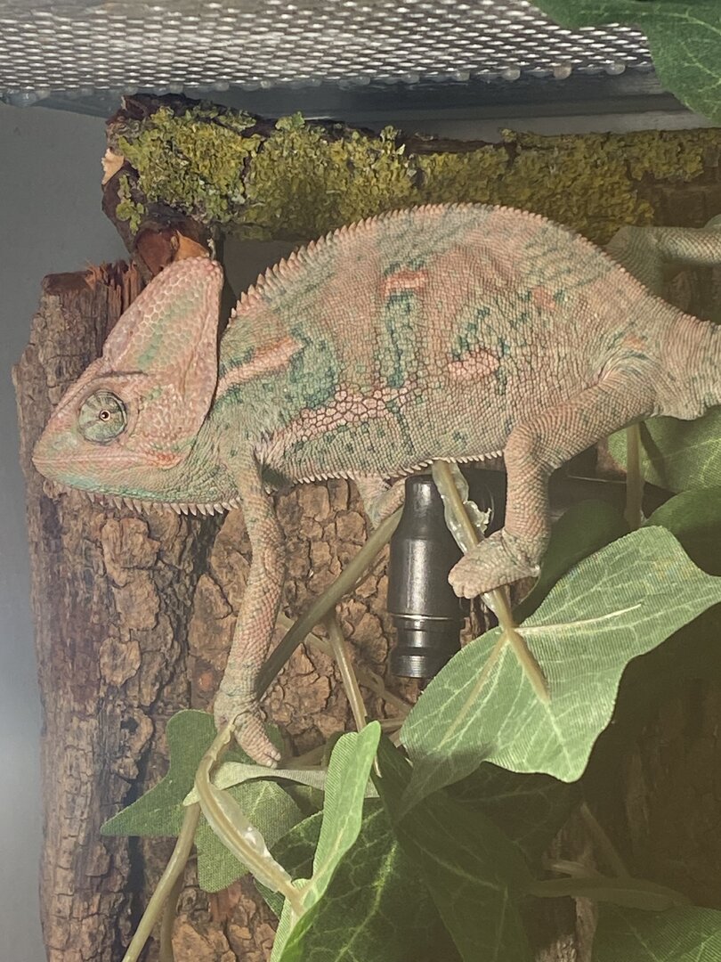What exactly are you using for UVB? I do not see a linear T5HO fixture which is why I ask and are the only ones recommended for chameleons. Incorrect UVB lighting can cause multiple major issues but also can compromise their immune system.