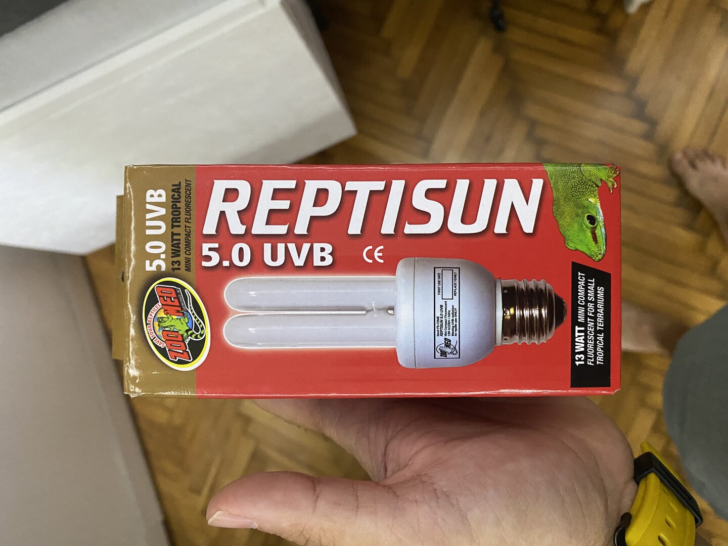 This cfl light is junk, its meant for 12-18" tall anole/gecko tanks, not 3-4ft tall chameleon cages. You really need to get a T5HO 6% or 5.0 from arcadia or zoomed.