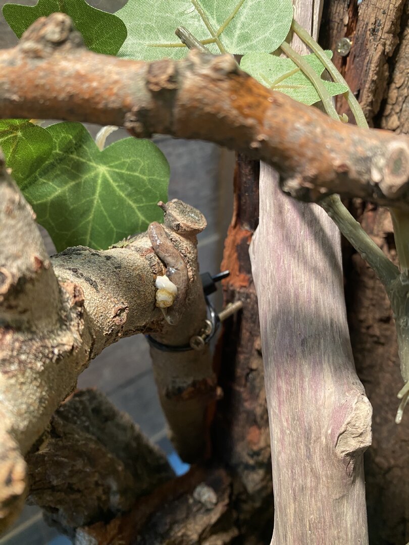 Hello! And thank you for the fast response. I attached a picture of the “poopoo” i understand that you can tell alot about his healt by his poop and all the pictures you asked. I do not have a monitor for humidity and heat. I moist 2/day 30 before the lights go on and off. And i have a cup that’s dripping an i fill it 3-4 times/day beacuse it has 40ml. After I wrote here it really scare me because i took him in my plam and he didn’t move at all. I tought he died🥲 But the he just jumped out of my hand and almost fell to the ground. I tried to give him vitamin A but I can’t open his mouth to give it to him properly