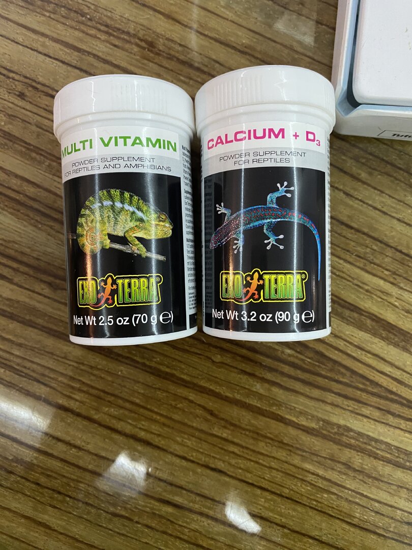 @nightanole gave some good advice. The supplements you have are to be given just one feeding twice a month. For example, on the 1st and 14th of the month, you’ll use the multivitamin. Then on the 7th and 28th you’ll use the calcium with D3. All of the other feeding you need to use a calcium without D3. I do not advise giving any additional vitamin A unless your veterinarian tells you to. If you want a much easier and better way to give the D3 and multivitamins, there are a couple of combination products that are excellent - Repashy calcium plus LoD or Reptivite with D3 (Make sure it says ‘with D3’). Attaching pics of each below.If you get one of those, then you don’t need the calcium with D3 and the multivitamin - toss them aside. You’ll still use the calcium without D3 at every feeding, and then one feeding every other week you’ll use either the Repashy or Reptivite. That’s it! Super easy and both of the combo products contain a form of vitamin A that is better than the Fluker’s and most others have.