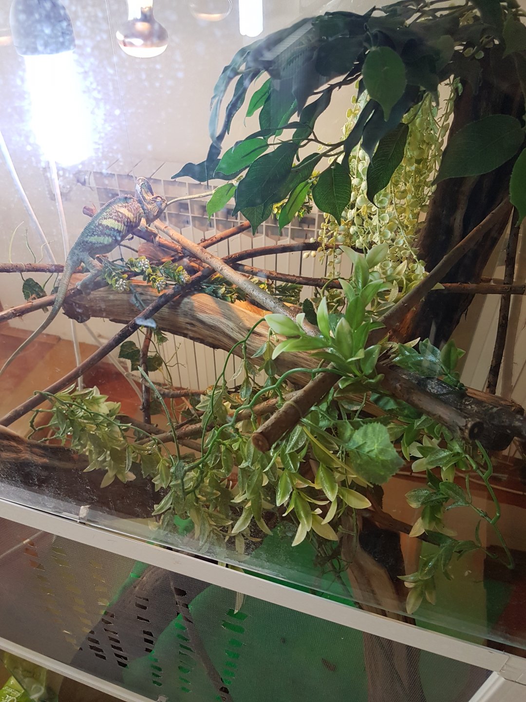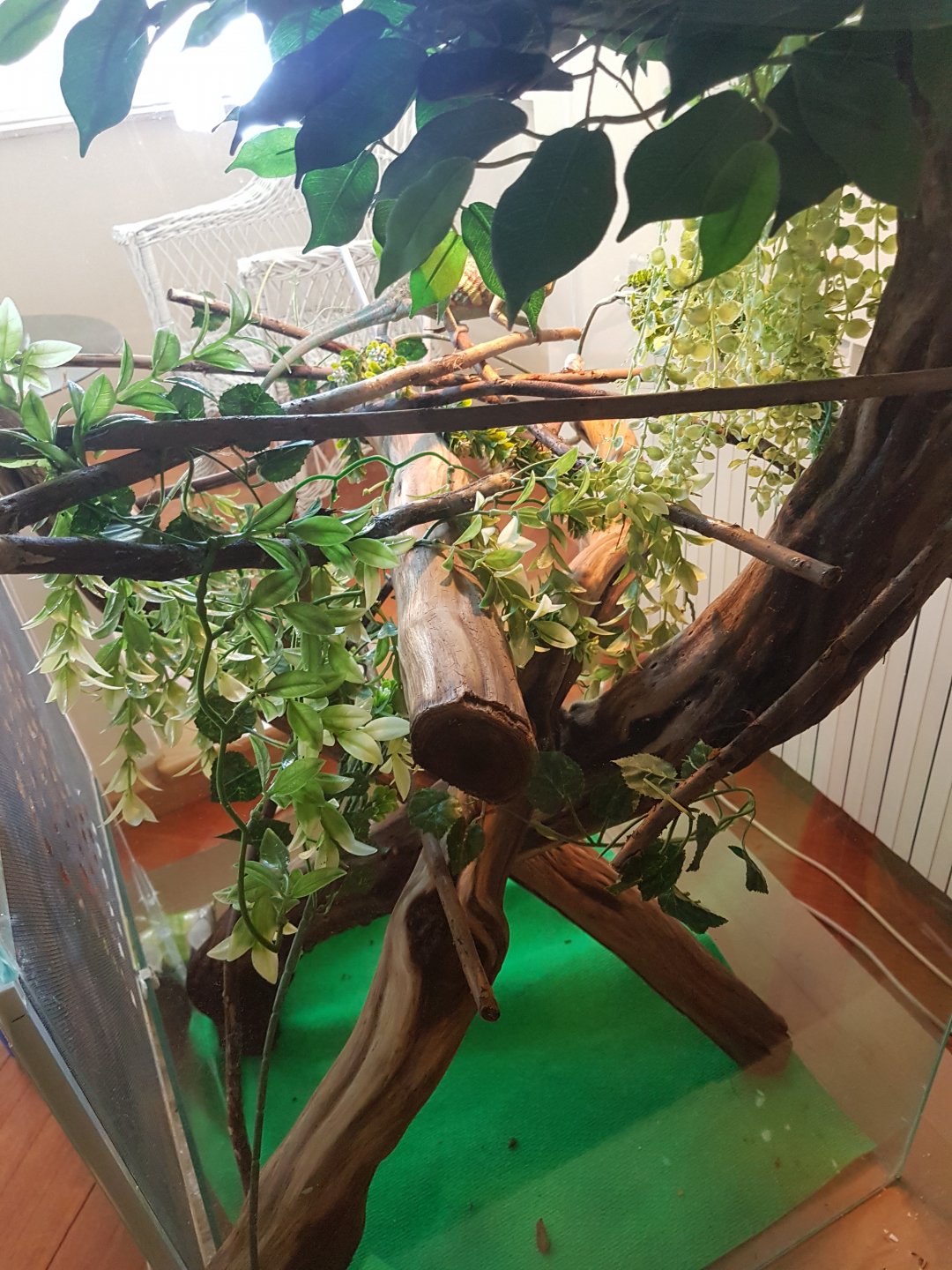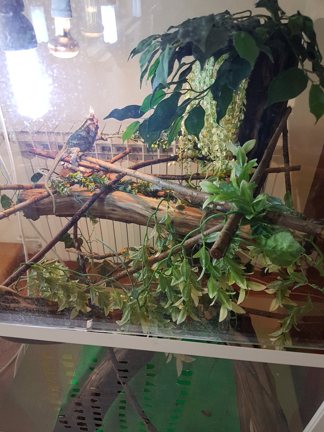 • Placement - slightly raised on a crate, 120 cm height of terrarium itself, in a room where only I go in, nothing to disturb him