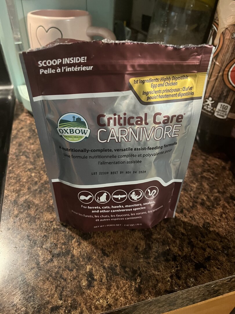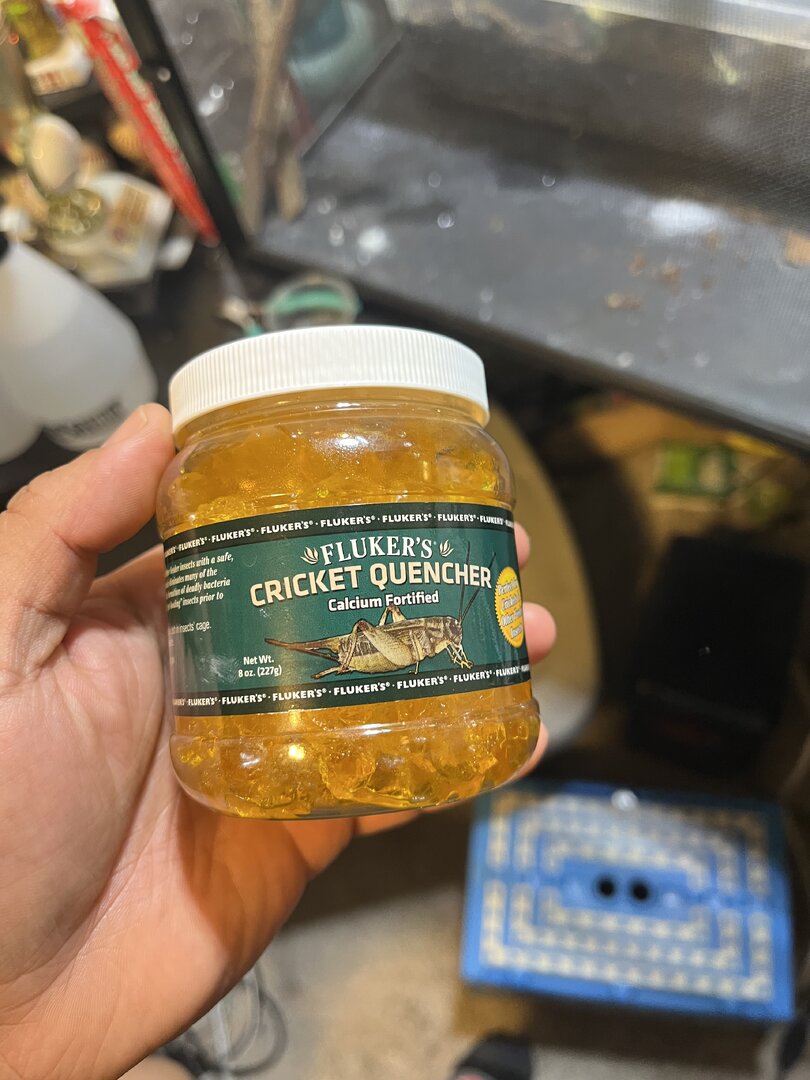 - Feeding - Crickets, calcium dusted every feeding without d3. And was doing reptivite once a week. Gut loading with fruit, lettuce, and cricket quencher. She was eating 10-15 a day but now she can’t see so syringe feeding.