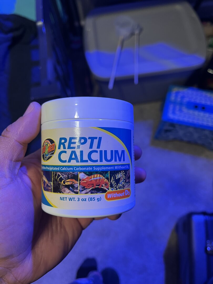 - Supplements - repti calcium without d3 every feeding. Using reptivite once weekly