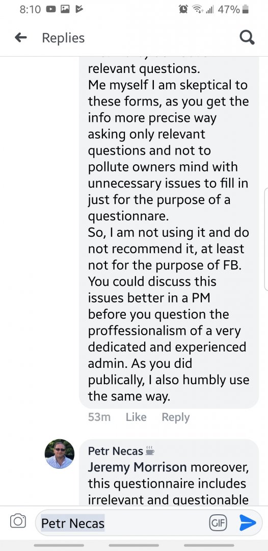He must be friends with the admin... sorry I don't bow down just because of experience. There's no good reason to not fill people in on some simple questions that take 5 minute. I like petr necas and have seen him post helpful info often, and we all know how much he's provided, but the hoops he jumped through trying to explain why it's not necessary shows he has a bias in this convo. Oh well, it's only human.