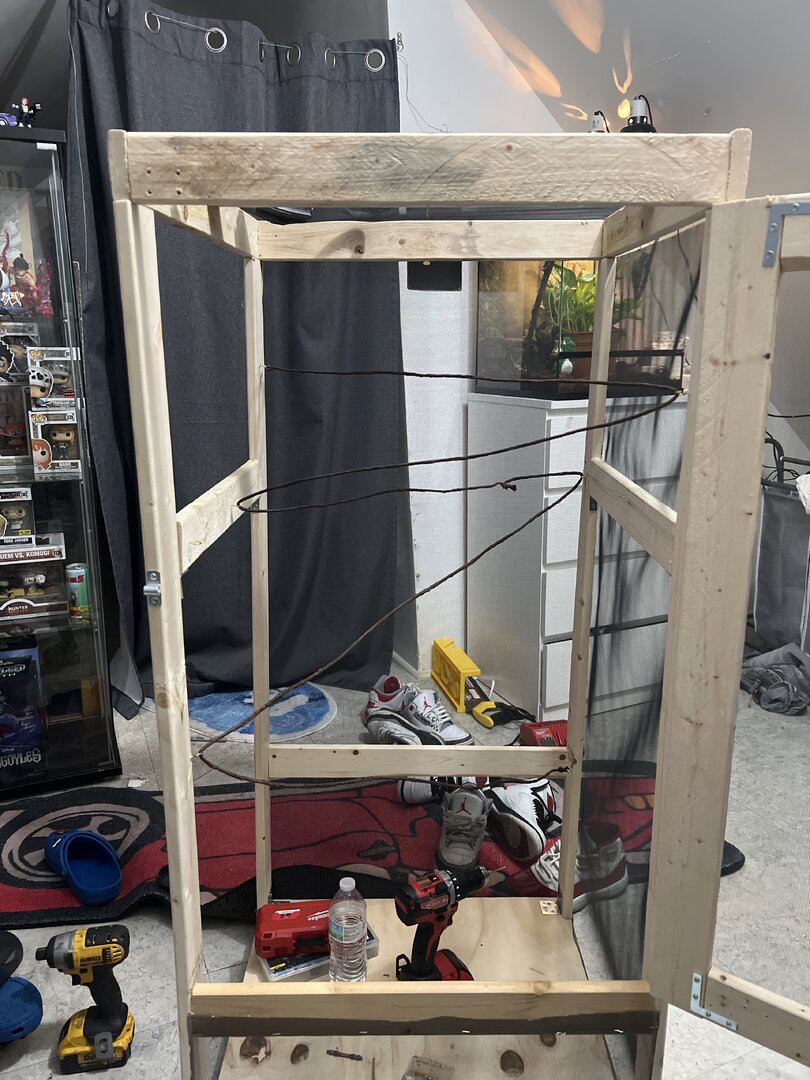 I just made my veiled chameleon a new cage but I'm scared he might fall from the top should I put some dirt or something so he can at least have something to cushion his fall? (Still need to add all the plants and more vines)
