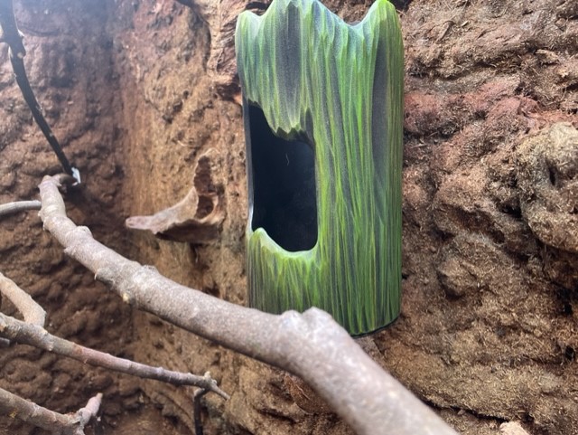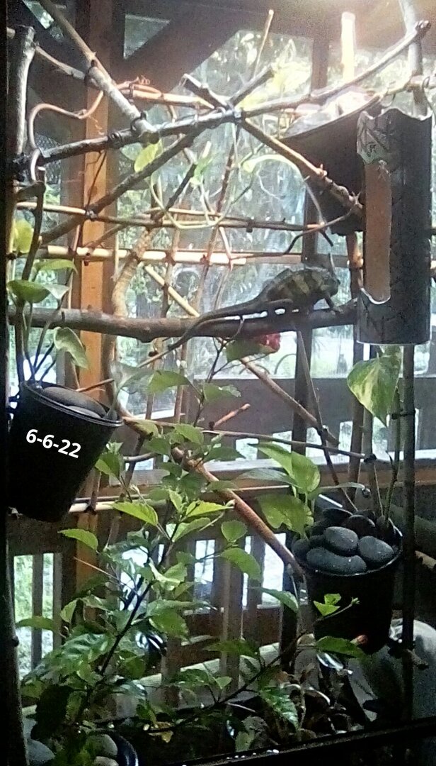 I'm getting my first chameleon tomorrow and I have to attach this feeder to the enclosure wall first. About how far from the nearest branch should it be? The bugs can only crawl up the inside back and the feeder is 4 inches deep. Not sure how far he can shoot his tongue. It's an 8 month old male panther.