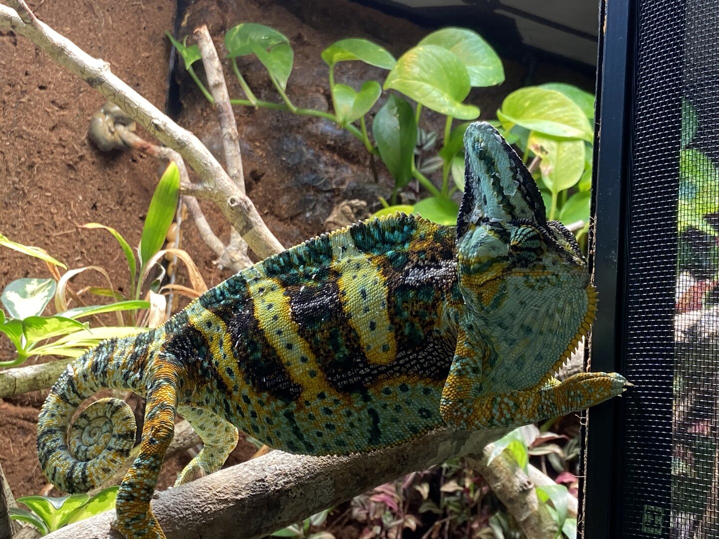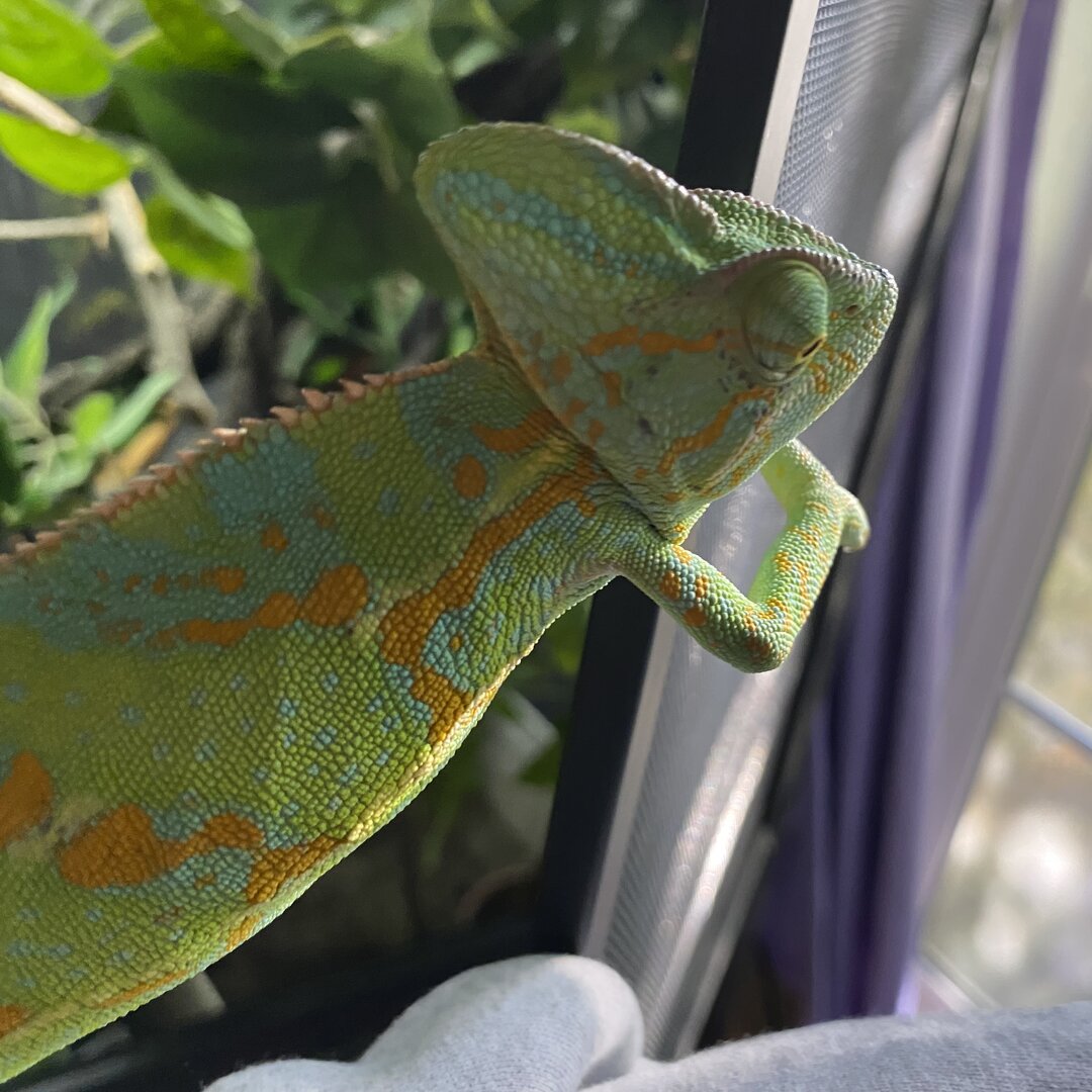 So let me start things off. My name is Becca. I have been a member of Chameleon Forums since November of 2018. I started lurking in the forum in October of 2018 when I got my first chameleon from Petco. Impulse buy and my first reptile. I was lucky and found the forum very quickly so I was able to make total husbandry changes within the first week of having Beman. Beman was 4-5 months old when I got him and will be 5 years old this coming June/July. I do not have an exact hatch date since he is a Petco baby. He has been in the same Dragon strand enclosure since January of 2019. Although I have made some modifications to it so that it would be a full hybrid cage. I have spent well over 2k on his total set up over the years. Adding new and better things to improve his overall quality of life.