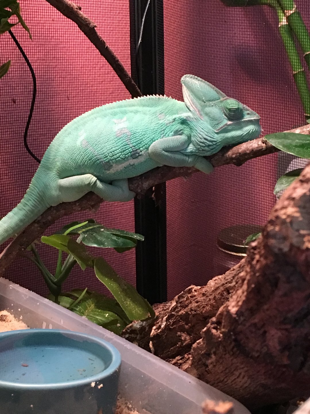 Hi. I'm looking for some help please. My chameleon has been acting very tired and weak today. I never really saw her drink yesterday so I've been spraying her much more often today just in case she's dehydrated. But her eyes and everything look normal. She's very off balance and not using her tail to grab on. Legs seem shaky so she's just laying in her egg laying bin I put in recently thinking it should be close to her first time to lay. Temps around 76 in the area she had been hanging out in usually. Her crickets are gutloaded and lightly dusted. Everything is the same as usual.