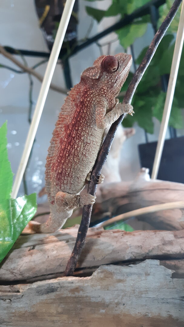 So I recently acquired a 12-13 month old CB female Jacksons. I've only had her two days now. She's eaten 3 dubia and drank quite a bit of water. So not bad for only having her 2 days. Looks extremely healthy with bright eyes etc.
