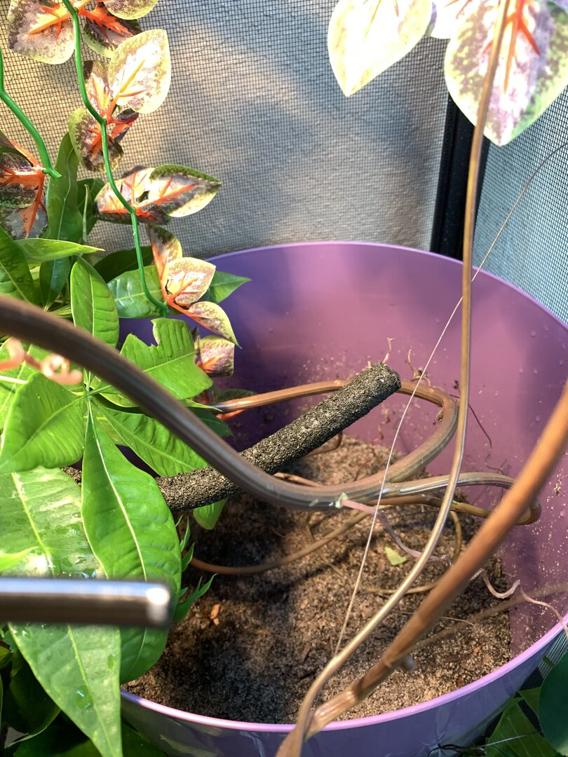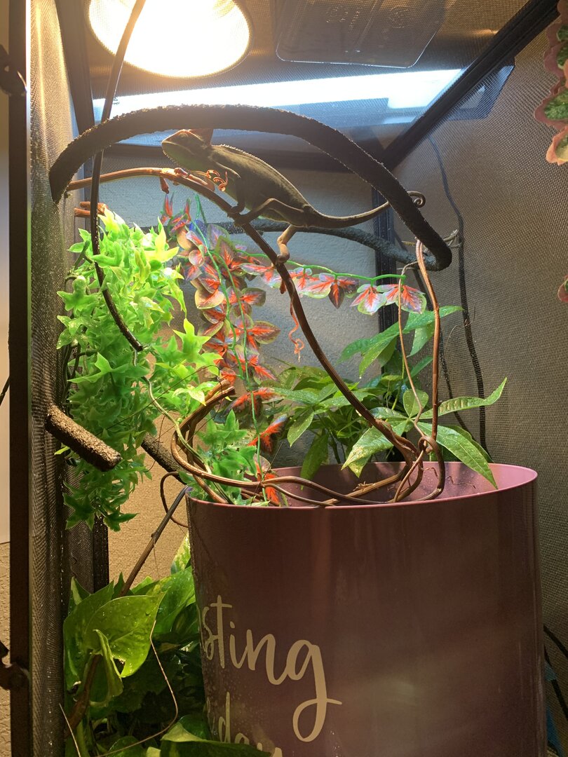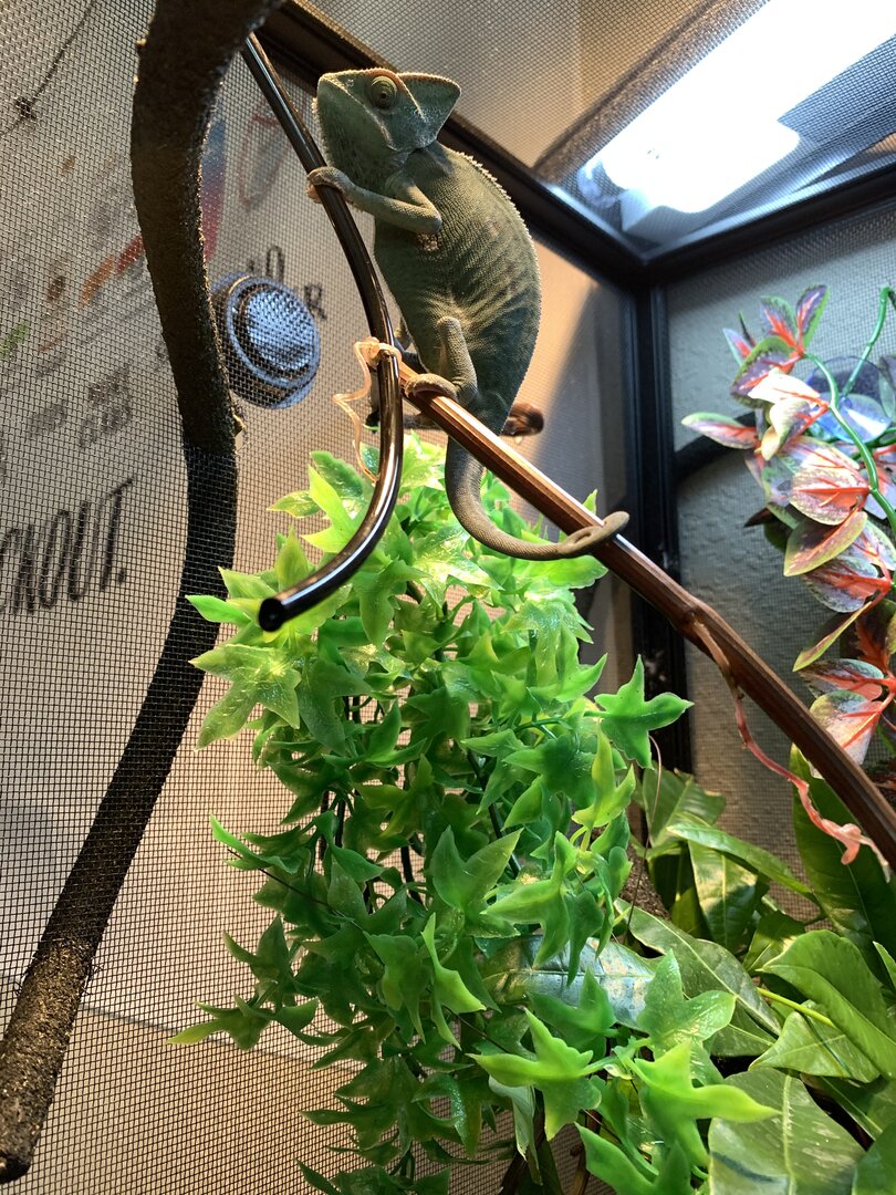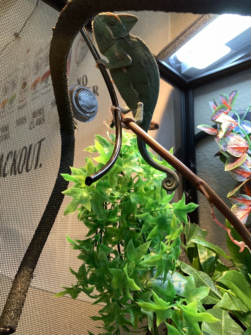 - Watering - What kind of watering technique do you use? How often and how long to you mist? Do you see your chameleon drinking?