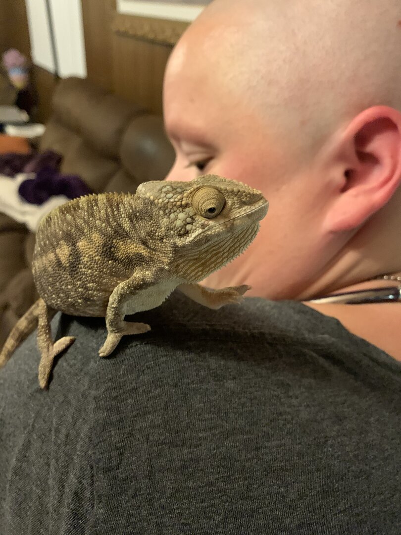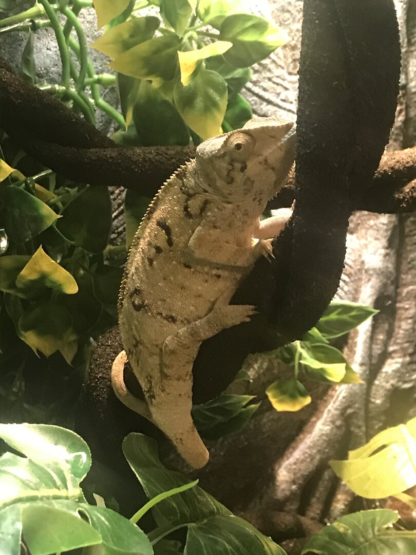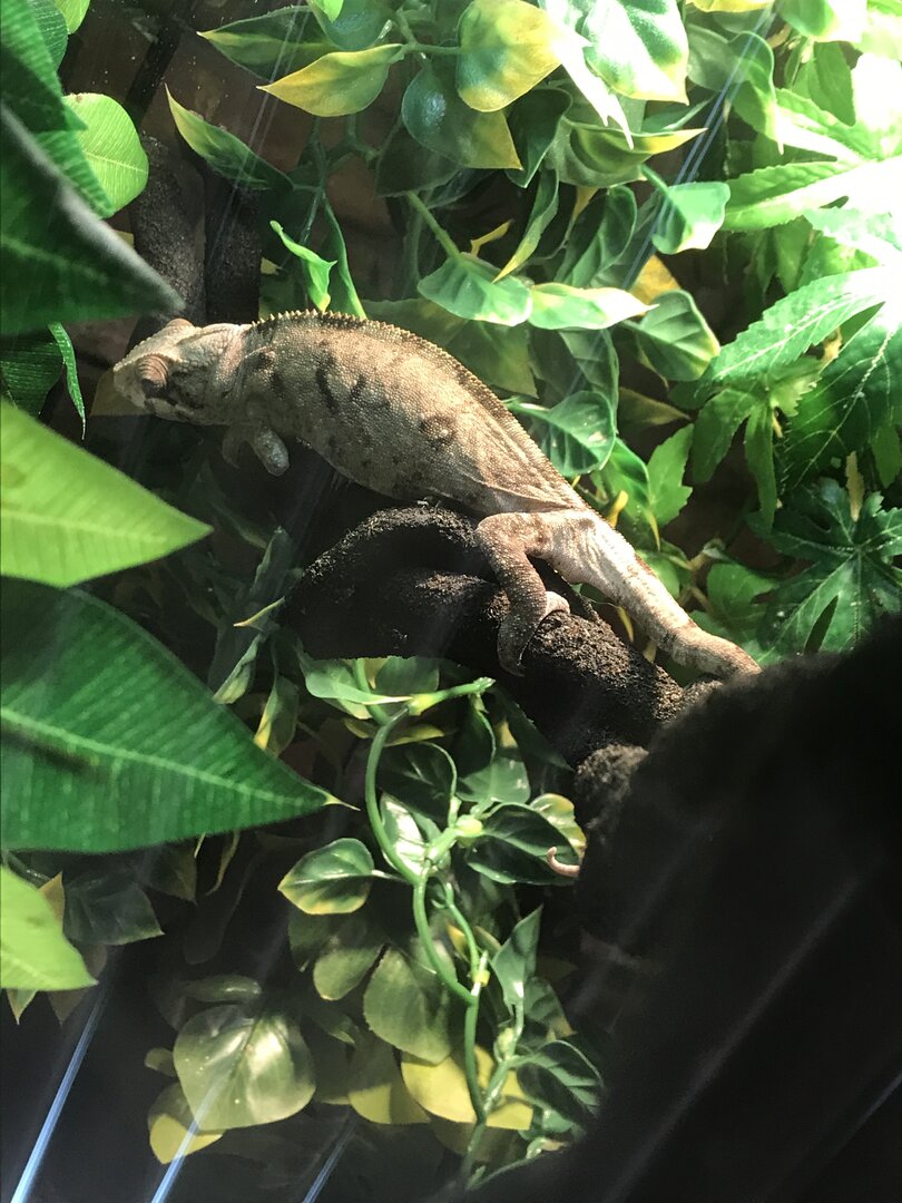 - Panther Chameleon, female age unknown, adopted after teenage boy abandoned at pet store, I have had her for less than a week.