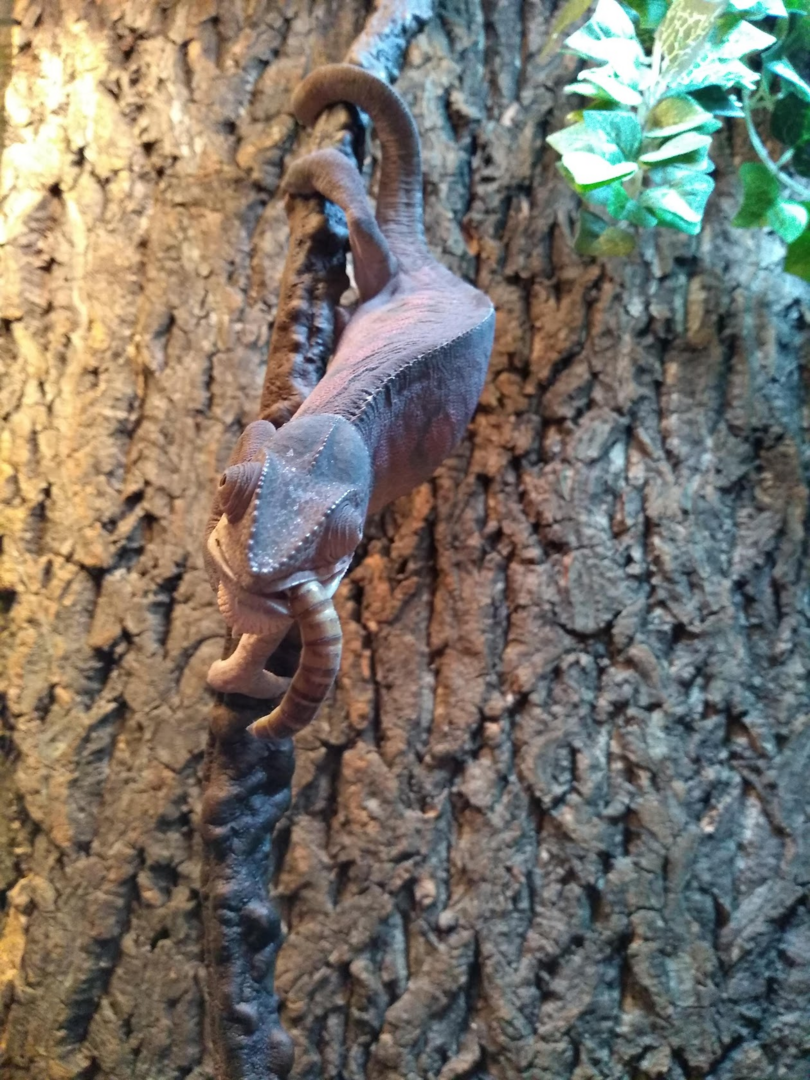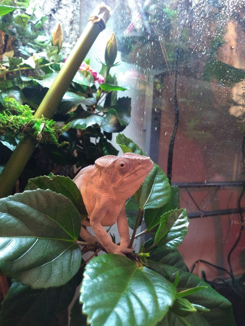 - female Panther chameleon, 8-9mo old (hatched 2/28 - 3/28). Been with us for 2 weeks