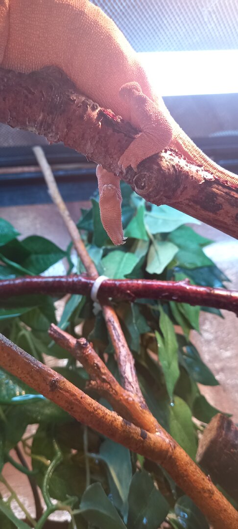 She has been reluctant on using one of her hind legs to climb. When resting she will let it just hang. I have seen her using it to grasp branches, but only if she has to.