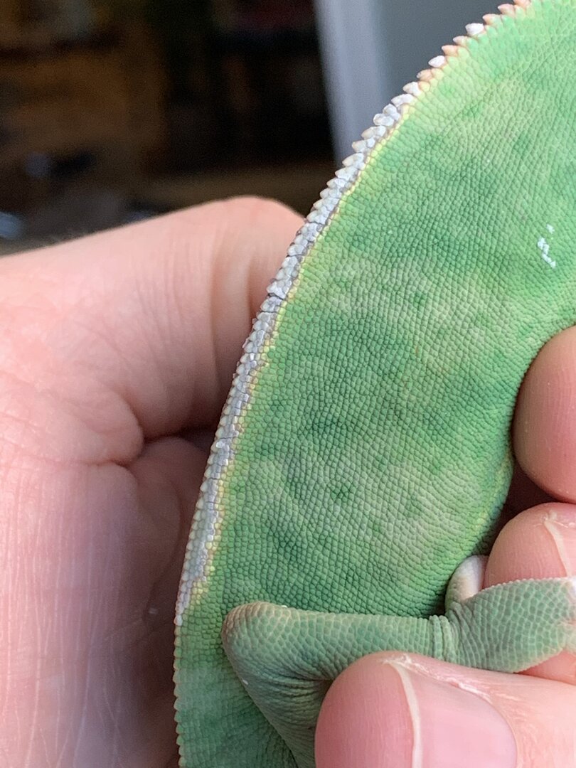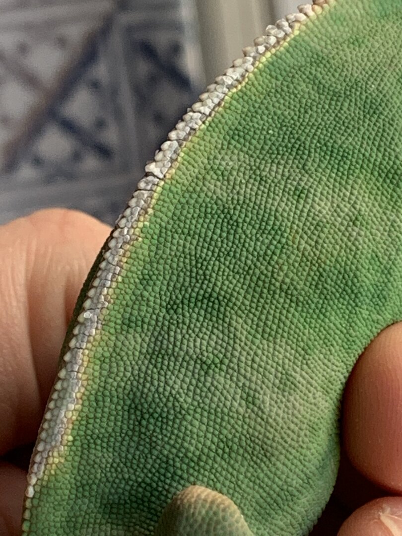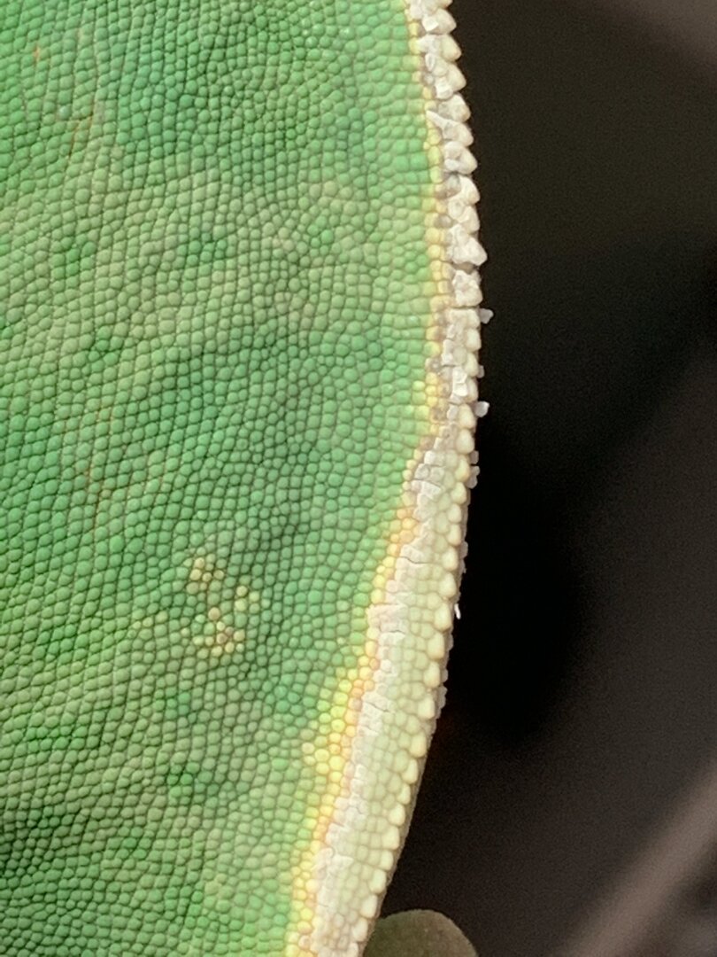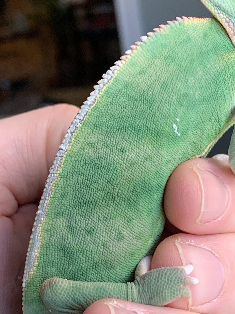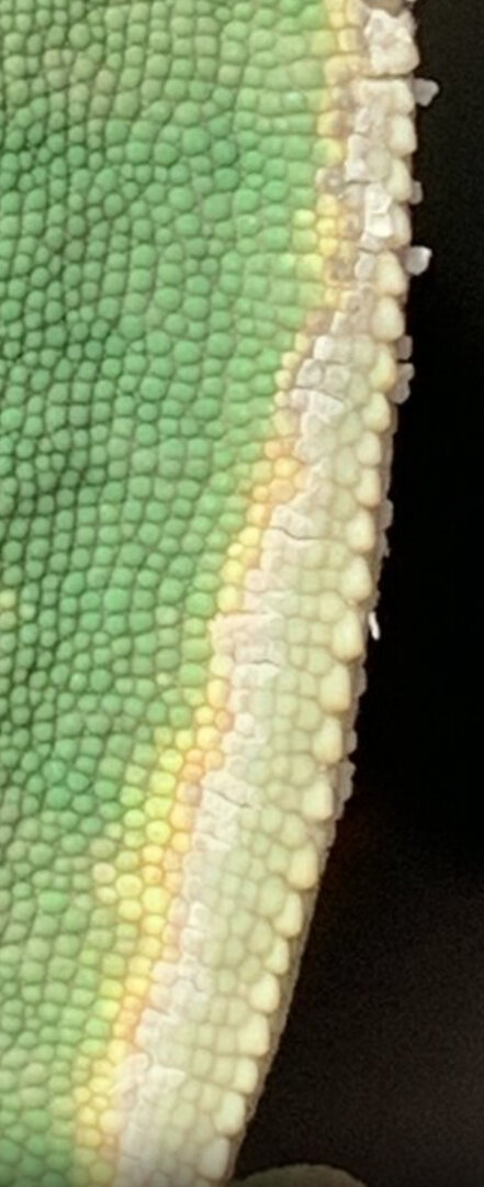 My female veiled did well with her recent shed except for the ridge on her back. I have read that spraying her and providing high humidity with cool temps (68-70) at night with low humidity and warm (78-80) temps during the day should help her shed but this skin on the back is stuck. I tried using warm water on a q-tip and gently stroking the area but it won’t budge. Any help you can provide would be helpful! She is friendly, active, and always interested in eating. If it’s just a cosmetic issue that’s OK but if this requires a vet visit I’ll get that done too. Thanks!