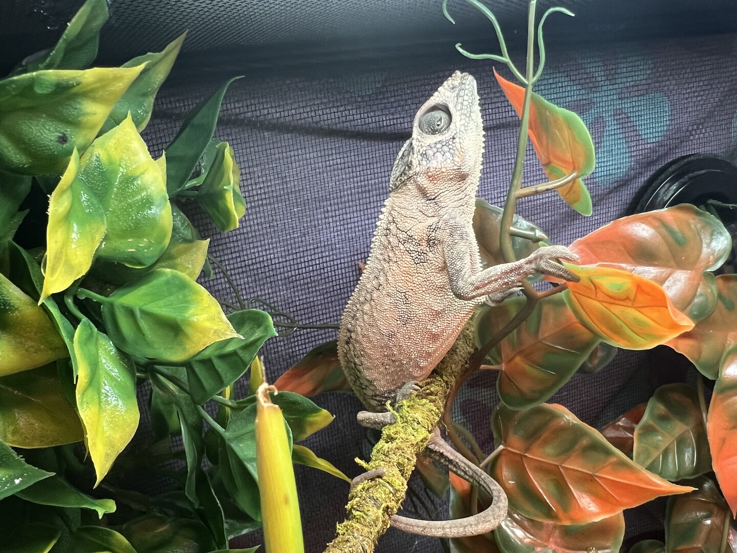 I believe the last pic is now.... Not good if it is because that cham is dying. They talk about how they put her in the smaller original cage after the last vet visit. Hopefully they respond soon.