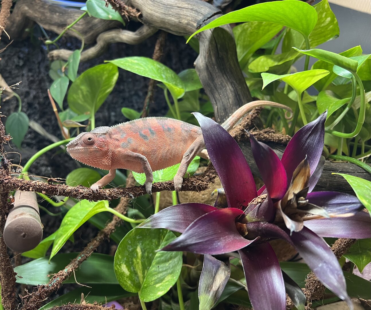 First vet visit was because she was laying on her side under the heat lamp in the day and turning grayish. I thought she was about to die because she let go of the branch too easy and curled in my hand. My vet got her in asap! He said for her age ( 14 months ) she might be trying to make eggs. So we did an x-ray and yes found there were 6 eggs forming and no parasites were found.