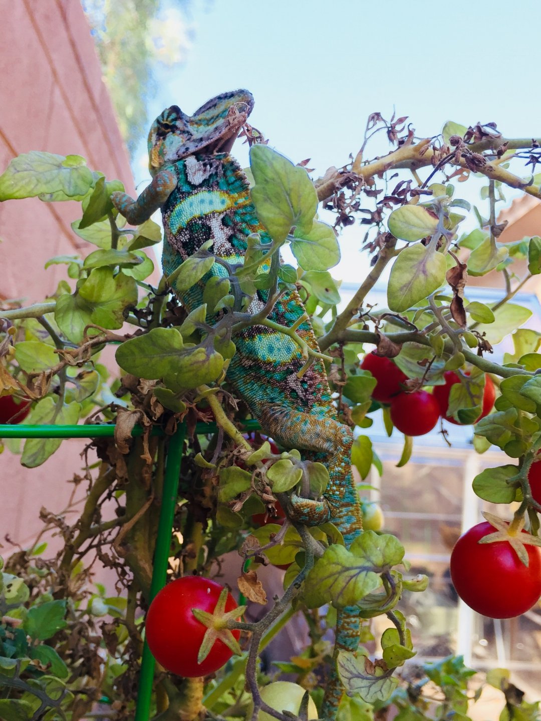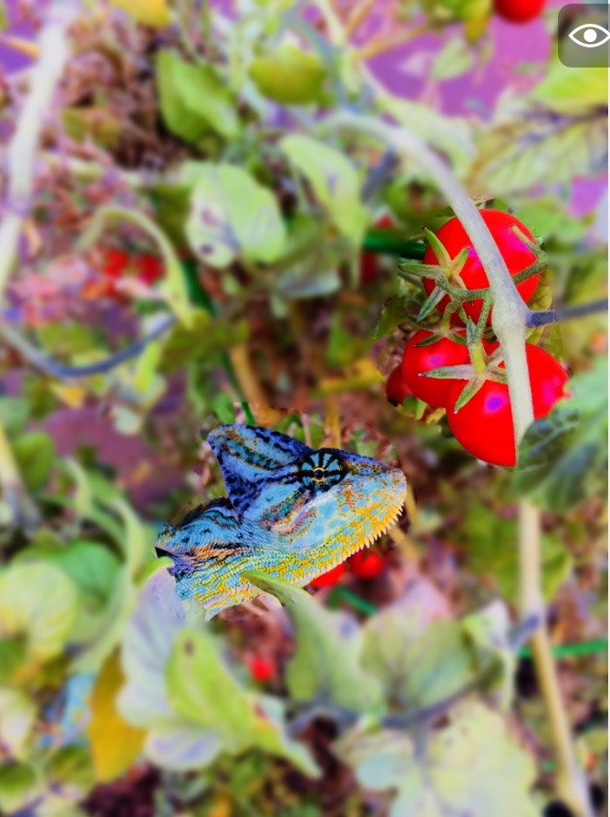 kinyonga said: Harry looks good! Are you hoping to attract hornworms with the tomato plant?? Click to expand... (Has visitors over, visitors ask why such mismatched plants, homeowner says its a "selective chameleon feeder garden".)