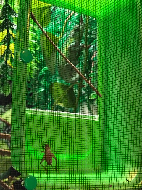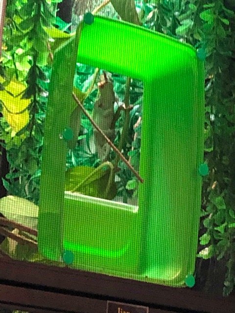 I basically put anything but hornworms in it. I still hand feed or put them on branches. I don't like them getting a grip on the screen. In the picture she grabbed a cricket and a dubia at the same time. Crickets could get out but tend not to leave. I think they feel sheltered and think they are hidden. Wrong again.What feeders are you putting in? I have been thinking about buying one.