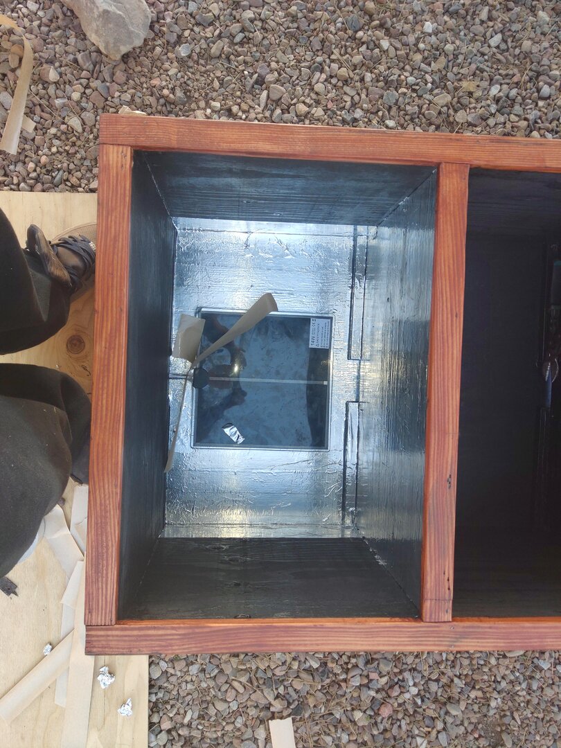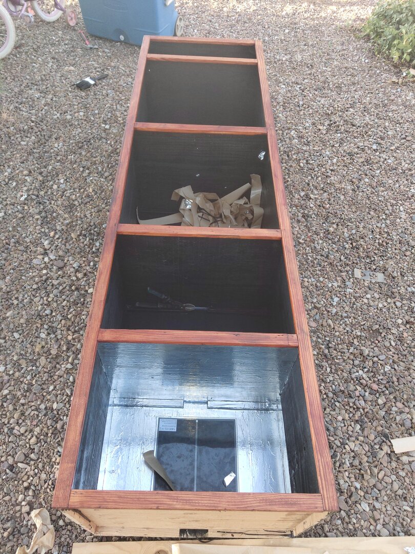 2 - 10 gallon Aquariums (again will be Zillas) this one, is heated with Heat Panel. There is Aluminum Foil tape, on the top above the Aquariums, on the back around the heat tape (not under it) and 3 inches on either side. This will help reflect the heat and optimize it's spread, I hope.