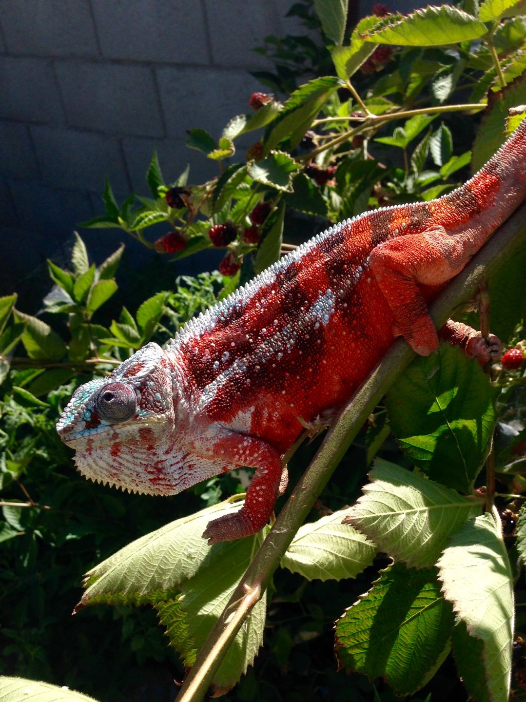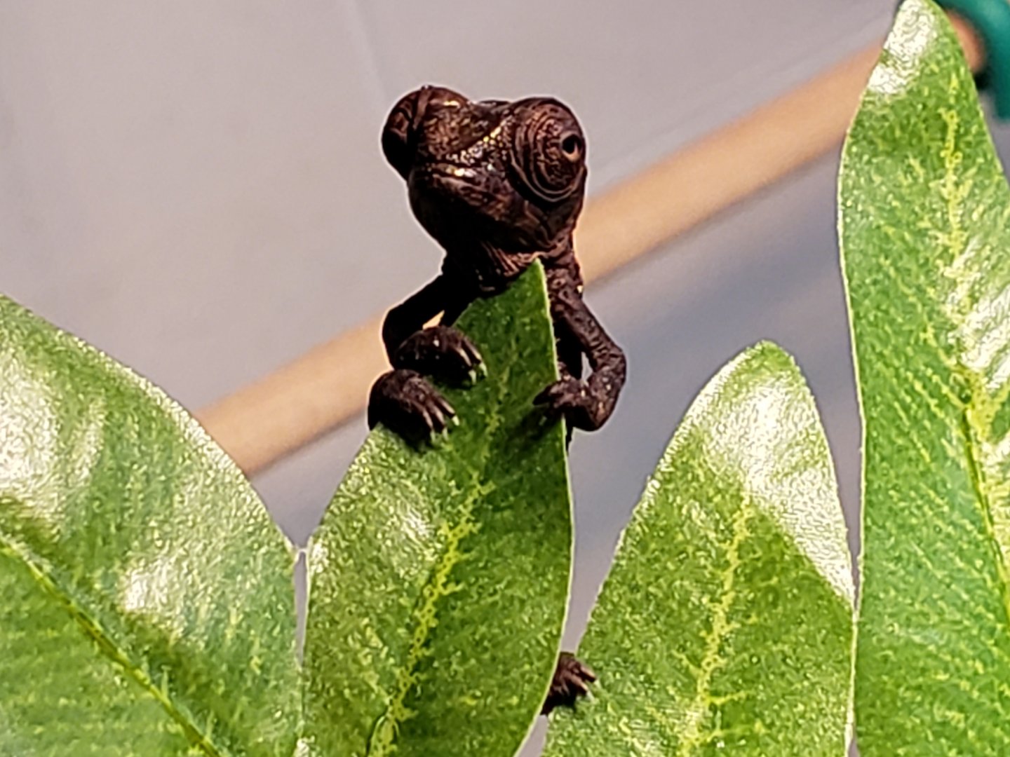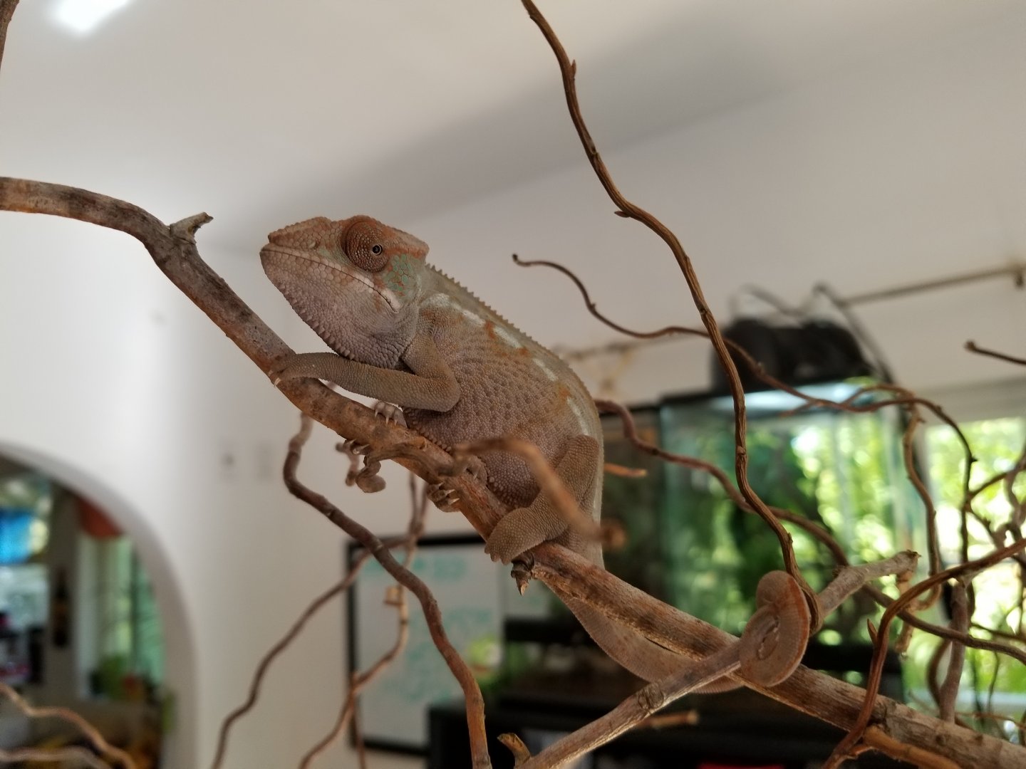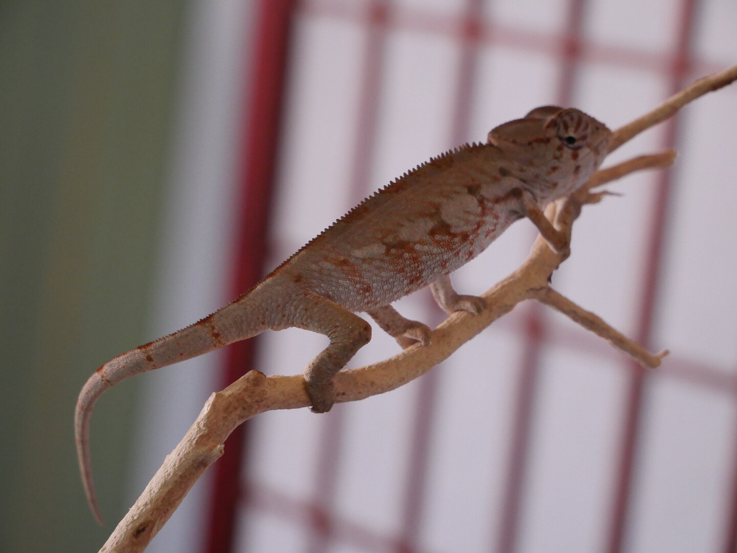 Sorry I don't have ANY pictures of Esmerelda's parents, I got them for a hobbyist that didn't understand chameleon care, they said they bought her from FL Chams (So she should be from the Clayton line). They would have killed her eventually if they had her much longer than the 3 months they did. So she's kinda a rescue in a way.