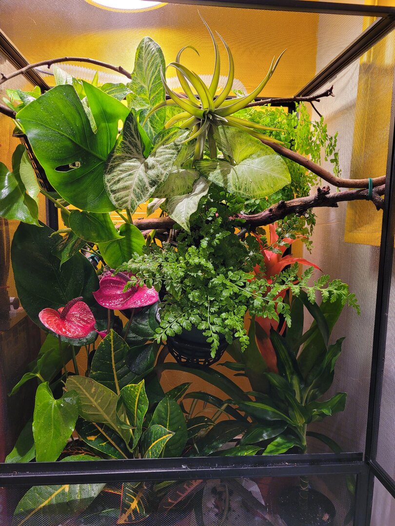 Right? It's often very difficult for me to find her. Sometimes I pull a plant out to water it and I hear her hiss but can't find her :ROFLMAO: I thought about putting a croton up front, but more than likely for now I'll buy a couple of mature ferns and a larger pothos and use those for additional coverage. I've also got some trailing plants that I'm propagating right now, so those will be added once their roots are more established.