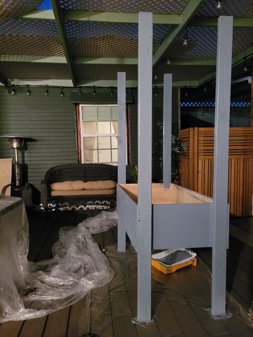 Today I finished building the frame and painted it (my 7 year old got to choose the color - her favorite has been blue since age 3)!