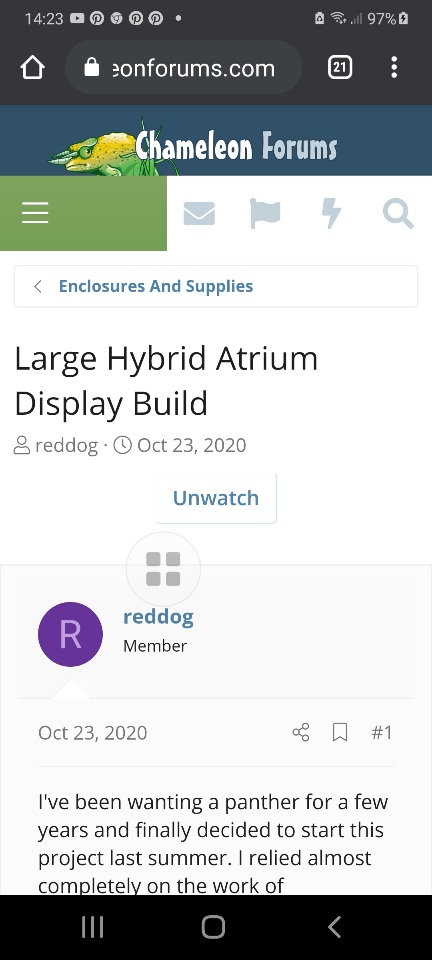I've learned so much in the last week alone about chameleons. I've watched hours of husbandry and enclosure build videos, read countless forums here, read everything on Chameleon Academy, and reached out to a few members (@MissSkittles @ERKleRose @jamest0o0) to ask them additional questions. It was suggested that I share the progress of my first build, so that's what I'm here for! This build is for my female veiled chameleon, Ivy. She's just a baby right now, so I have about a month to complete this build and then give it about 4 weeks to do its thing and regulate before introducing her. To the right is a picture of her current setup. I am hand-misting, and rocks were added to each pot after the photo was taken. The bottom is covered by a puppy pad.