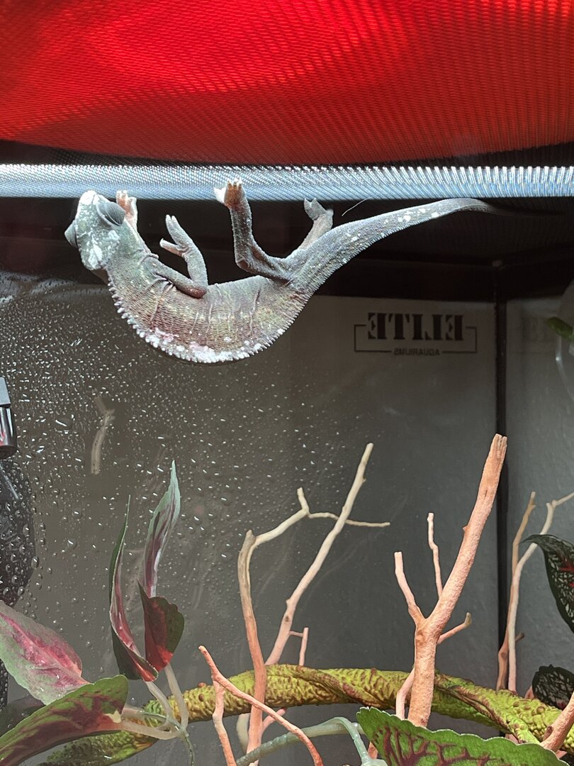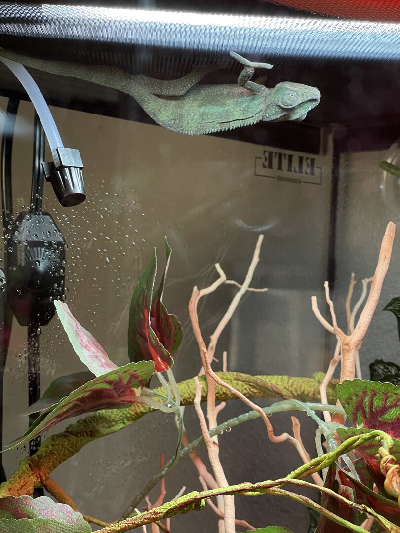 - Watering - What kind of watering technique do you use? How often and how long do you mist? Do you see your chameleon drinking? I currently have a zoo-Med mister (which sucks by the way and barely sprays a little spot with terrible mist) set to 45 seconds every hour, at the Moment I am using bottled water but I am looking into buying a Brita, I currently spray about once/twice an hour.