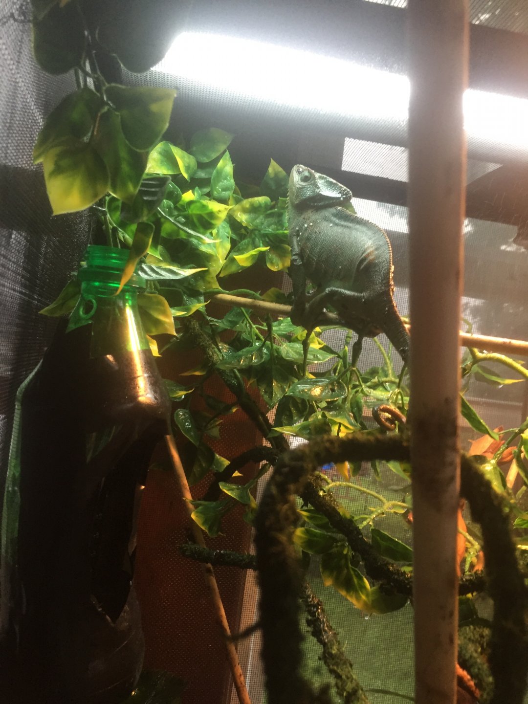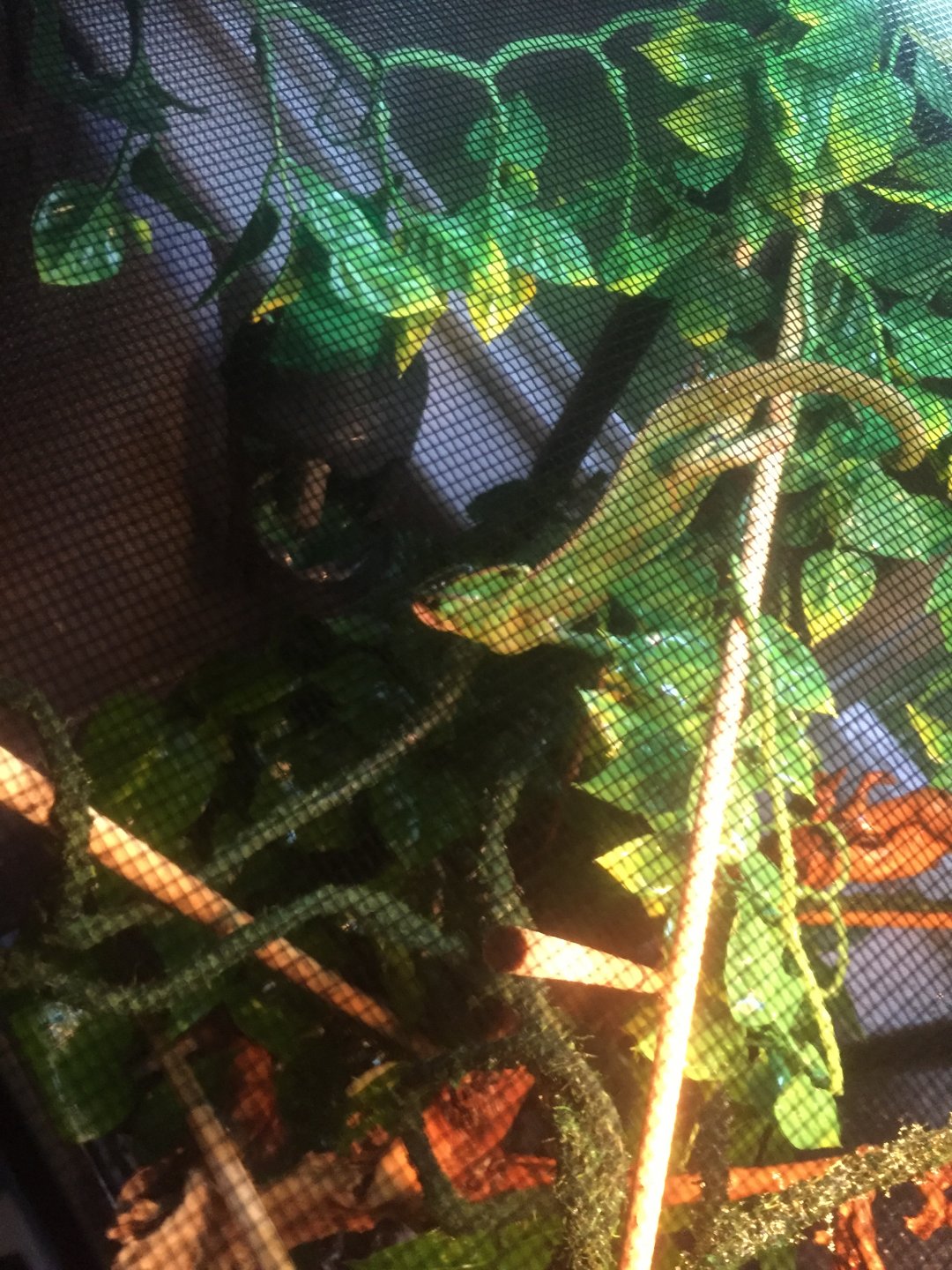 - Lighting - Lights on for 12 hours a day, some natural dim light at dawn and dusk right now, her room has windows. Repti sun uvb light (long kind) and low wattage basking light (25 or 50? I’ll look for the box) on a dimmer.