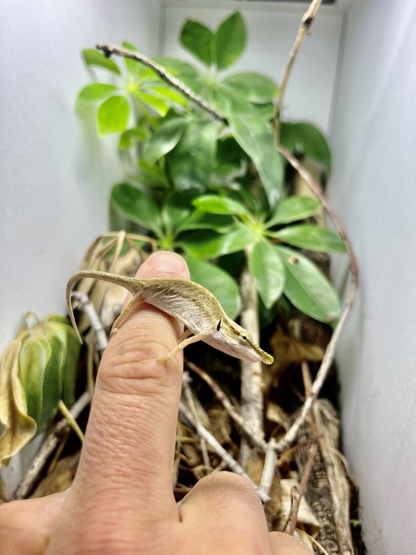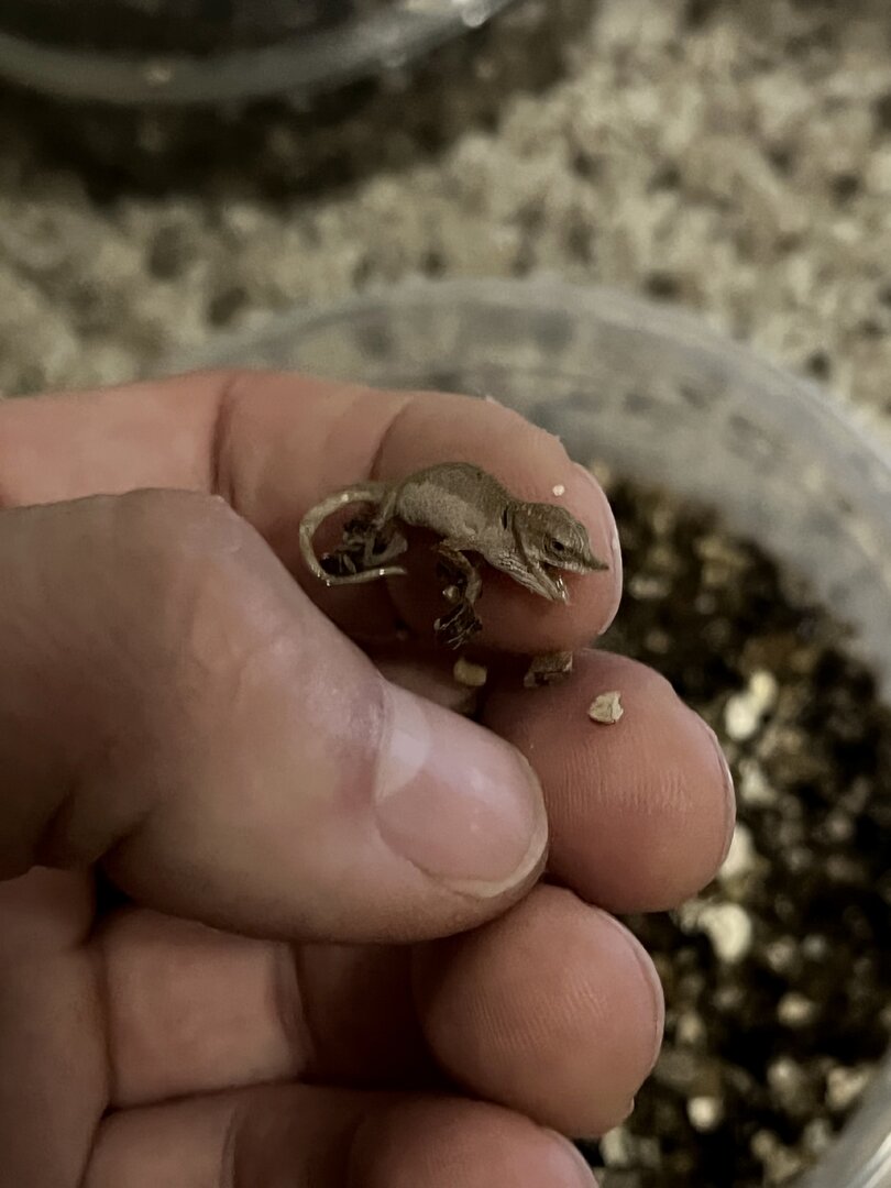 The first of hopefully many captive bred calumma roaloko has hatched. To my knowledge, this is the first time this species has ever been produced in captivity. This took almost exactly 4 months of incubation, at low 70s during the day, to high 60s at night. No diapause needed.