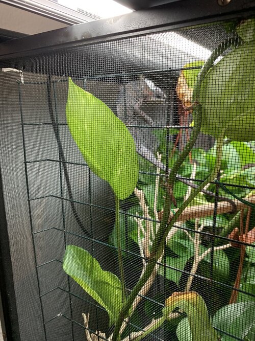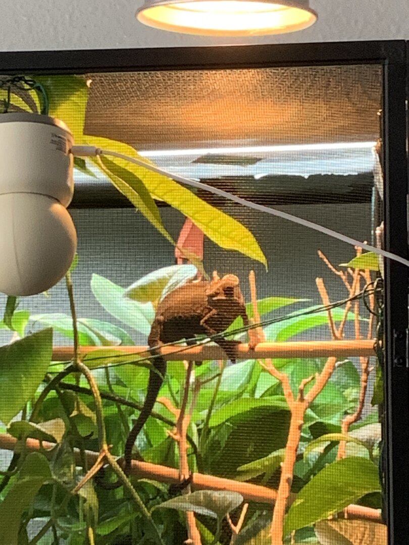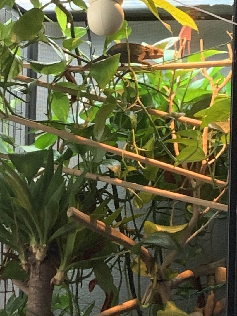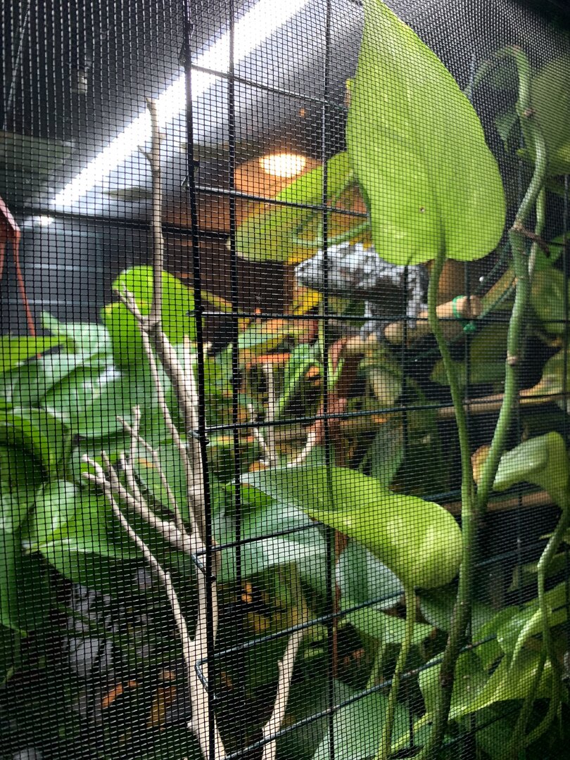 @Gloriawood you called it! His face is shedding and I can see his arm getting ready to shed as well. Hard too see in this photo through the screen but I can see it clear as day now that I can get a closer look at him.Yes they will bask after eating as it helps them digest properly, so that’s good! I’m betting the whit you are seeing is a shed coming on. As they get older, they will shed in pieces rather than all at once like babies. So he may shed his face now, his legs another day, his back another day etc…