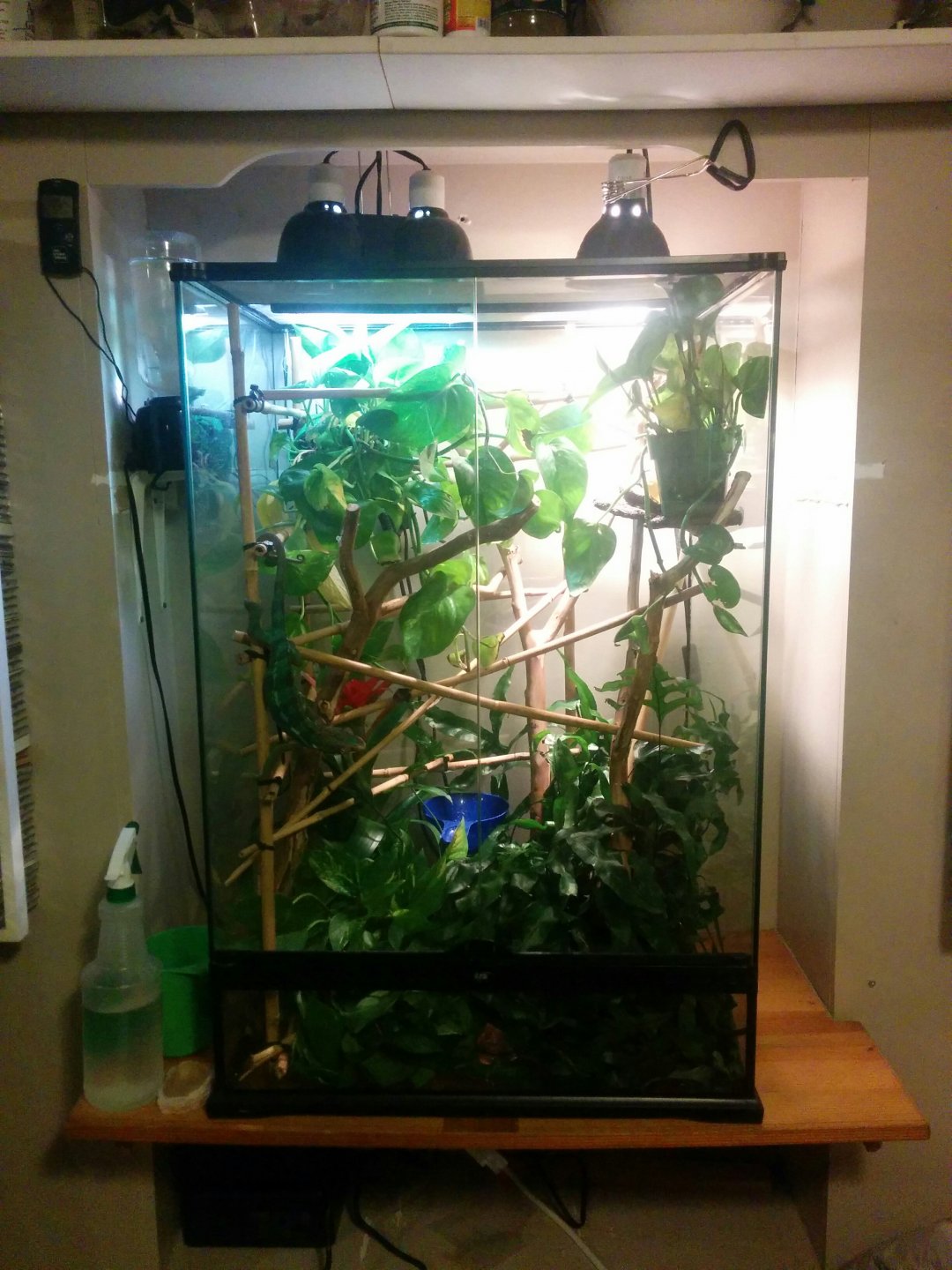 My fiancé and I are first time Cham parents. We have had Yoshi for about 6 weeks. One thing we have learned from the research we have done is that preventative care is what matters most for Chameleons. We have taken the time to include as much detail about our set up as possible and would love to get some feedback from this great community about anything we are doing right, and of course what we could be doing better!!!