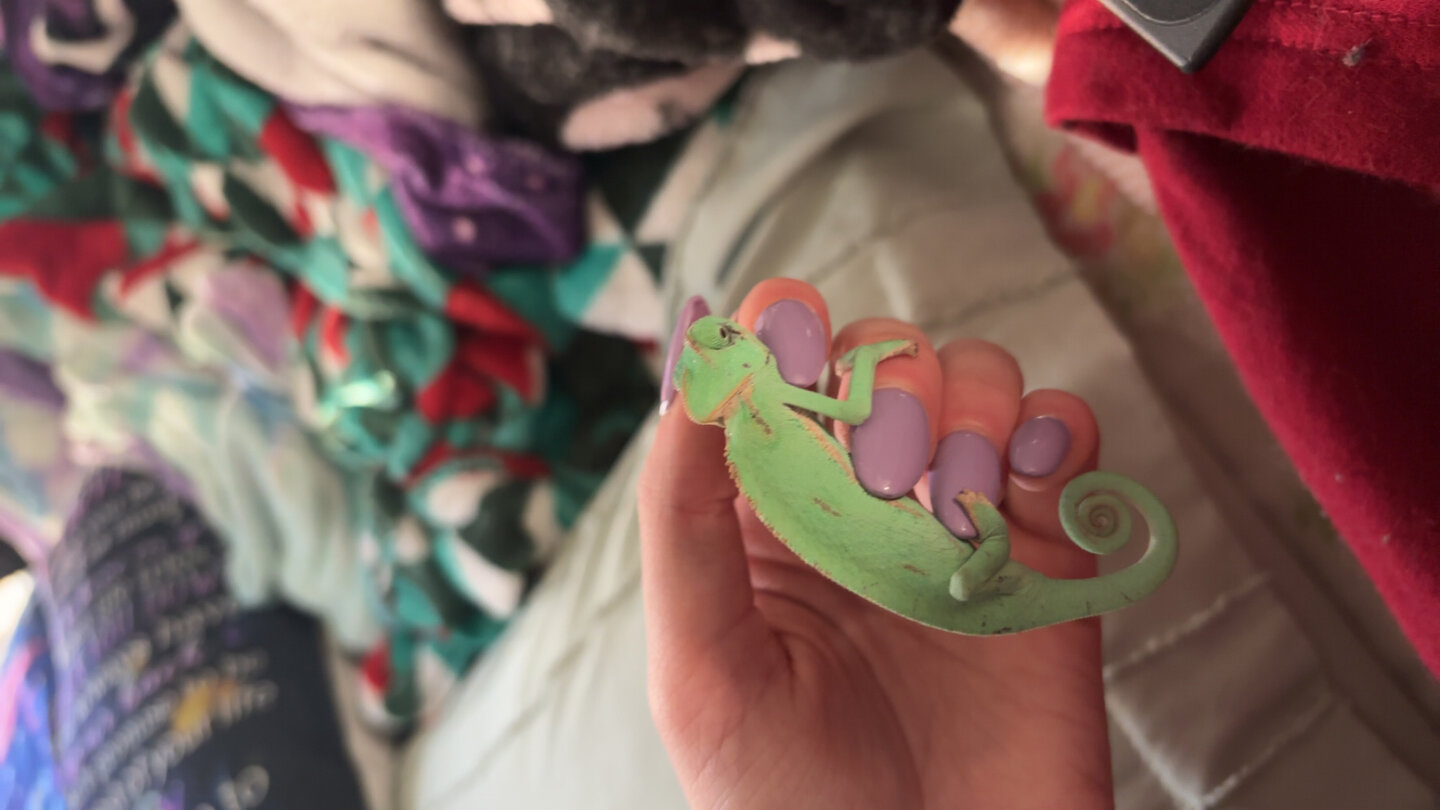 Hi!! I got my first chameleon. He is a veiled chameleon, and is still young. I even named him, his name is Rango. I feed him twice a day, a normal amount that way I don’t over feed or under feed. I got him from Petco.
