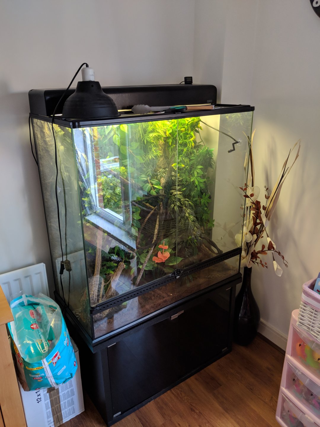 My concern comes from the fact that I'm yet to see evidence of him eating. In the shop they showed me that they hand fed him locust. I have tried to replicate this, but he hasn't been interested. So I placed 3 locust in the enclosure, which are still there.