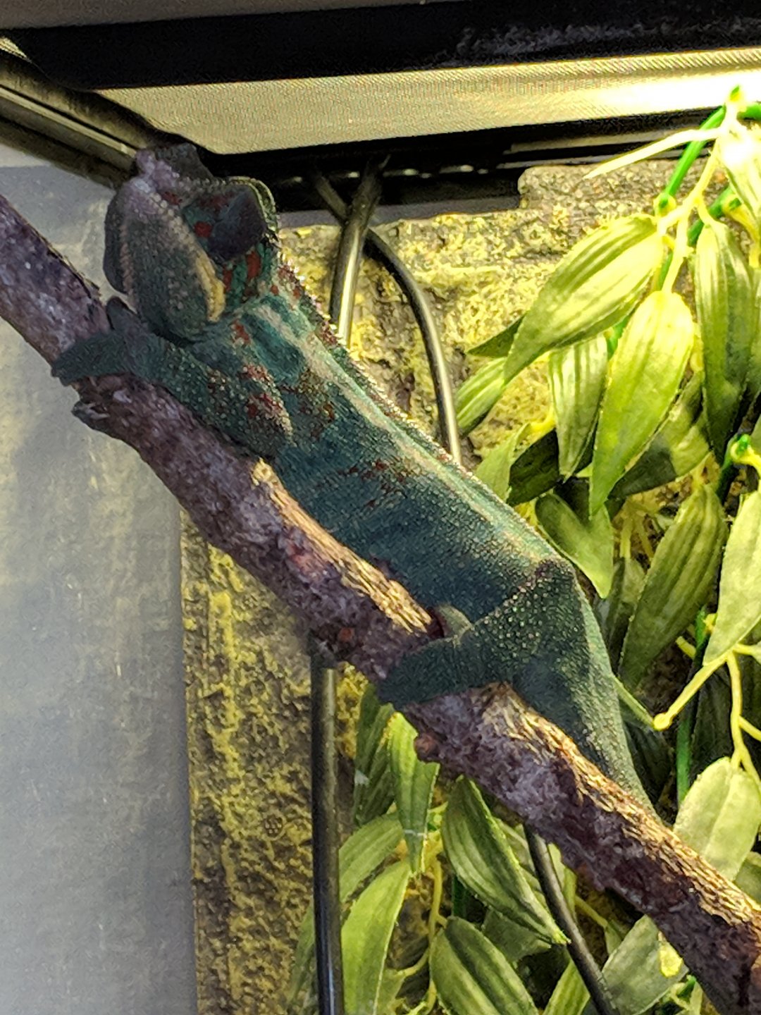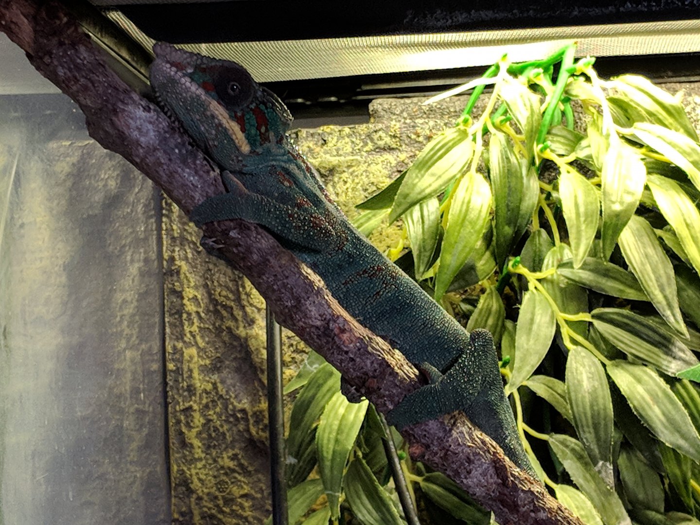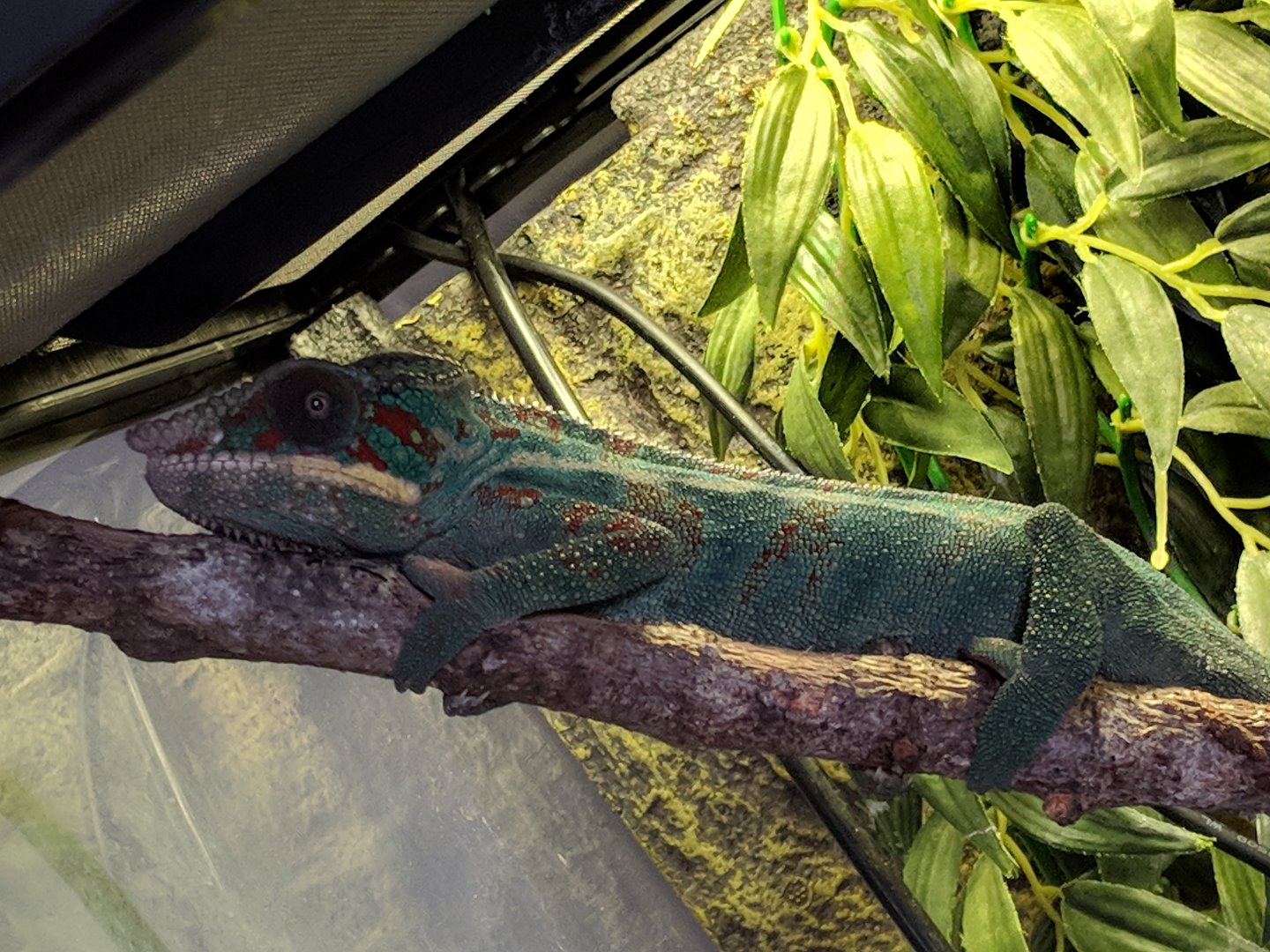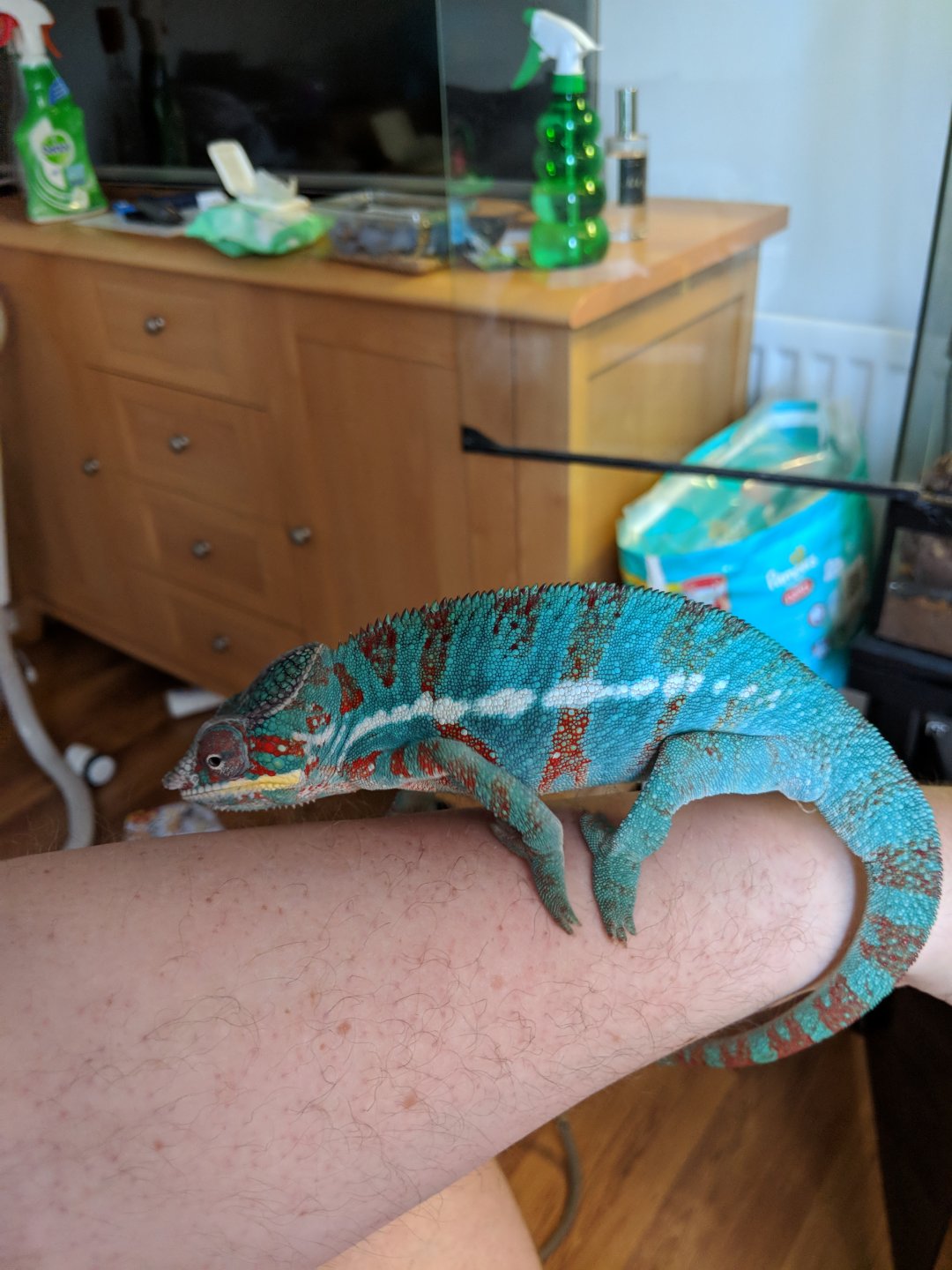 Hey, first time I've owned a chameleon. I have a male panther chameleon which I've now had for a total of 3 days. When I initially viewed him in the shop, he was very active and happy to be held. I had the opportunity to hold him myself and he was very friendly.