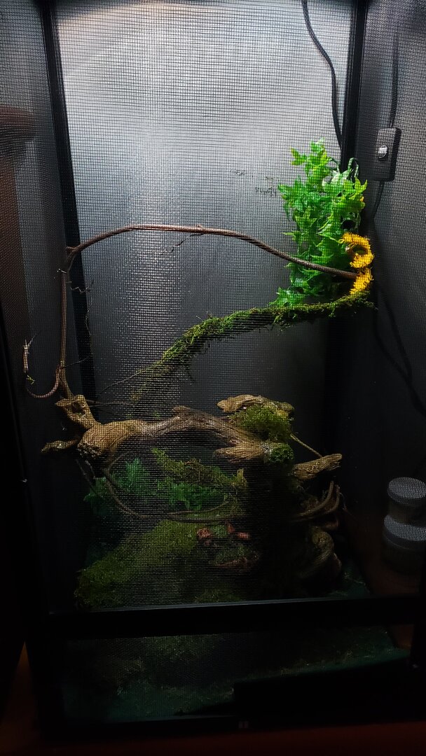 • Plants - I have no live plants all fake except for the moss and one of the vines is real. Currently building it more. Need help with this