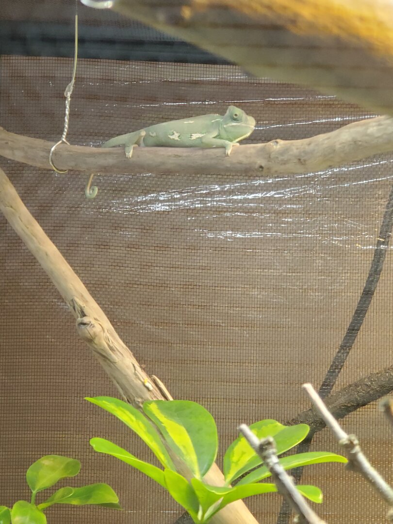 - Cage Type - Describe your cage (Glass, Screen, Combo?) What are the dimensions? Started off with both of them in the dreaded chameleon kit cage, because I'm the worst kind of impulse shopper, and why wouldn't I go for the 2 for $70 deal, they definitely need a buddy .... After getting home and jumping online to give myself a crash course in chameleon husbandry, I realized that I was super super ill prepared. And then I proceeded to Amazon and started ordering like a mad woman, to my fiance and ups drivers dismay. I ordered a screen exoterra 36x18x36 terrerium, hoping that that would be big enough for me to still be able to house them together. That lasted a few days before I realized what a biatch Blanche is and knew that I had to move poor sweet rose into her own space. Sooooo, back on Amazon I ordered the zoo med 24x24x48 for her. Got it a few days later and it came with bent frames to the sides and a gash in the screen on one of the side panels. So I got a replacement a few days later and set it up as quickly as I could with lighting and plants so I could move her in. They have been in their separate areas for 6 days now.