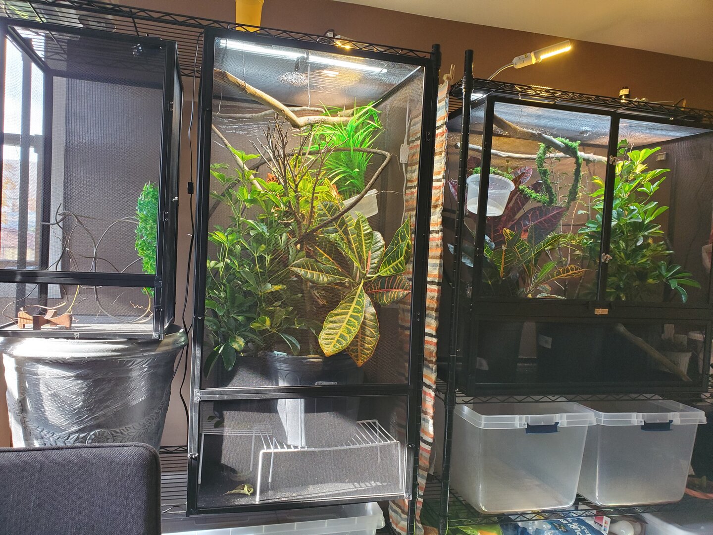 - Plants - Are you using live plants? If so, what kind? Yes, both have a schefflera, croton, and hibiscus. Rose also has a fake aquarium plant I had gotten for the little baby Viv initially.