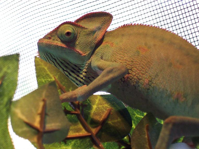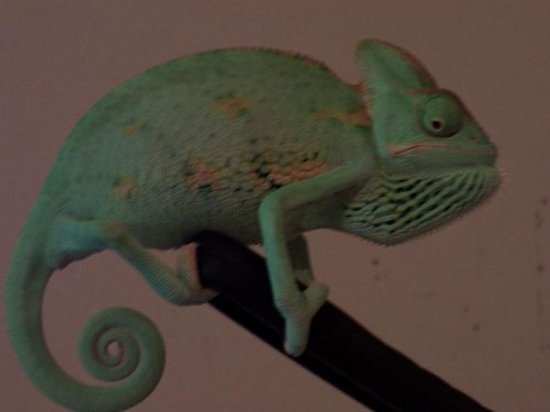 Hey! I am a first time cham owner (I just got my first veiled cham, her name is Shelby.) I built her a cage (2x4x7ft) and put all the fixins' she needs (humidifier, palm tree, tons of vines, mister, UVB light and her basking light). She's very young. I was told she was 6 months old, but she's only 3 inches long, so I think she's way younger then that...couple months at most.