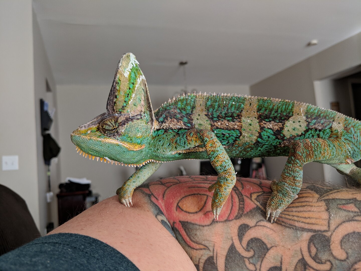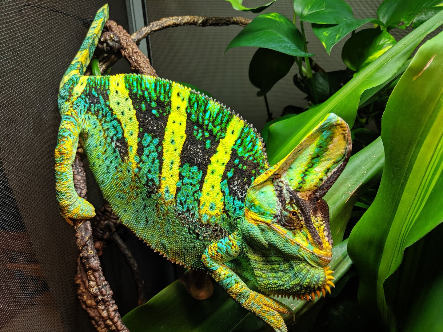 Good day everyone, my name is Colton Murray. I bought a 150.00 baby veild chaneleon from them and then I get this little adorable baby that I was expecting to have a baby from the Sire Driskel. He starts growning and after he is 6 and a hlf months old Im like why is he always brown and never showing turquoise and bright orange like his dad. So I message once and get no response and then again and am extremely polite to them and say he is it normal after 5 momths that hes not showing any colors and they said give him time. Still brown and is a tiny chameleon. Payed 150.00 for a 25.00 brown vield. Crushed me to know i was taken for a ride. I did research and found Im not the only one. So I want everyone to know these people do this to there customers. Mabey at one point they didnt do this or only part of the time, but either way like wtf honestly wtf. I still love Yoda even though. I bought Sergio thats in my profile pic for 45$ and he was 17" and absolutely gorgeous. I was expecting Yoda to show colors like the Sire driskel a little and never. Always brown