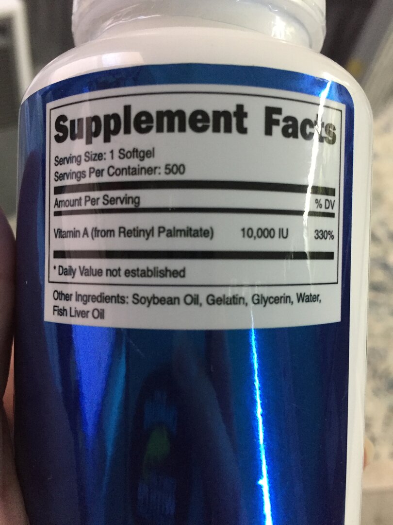 But for the vitamin A here is a bit of a work around... (AND IS NOT recommended for the newbies reading this. Y'all stick to the regular supplementation.) But if your vet is saying Vitamin A is needed then here is what you can do. Buy Vitamin A gel caps. See image below. Your looking for the type that say from Retinyl Palmitate on the back in the vitamin A type. Now then you take a gel cap and poke a hole in it. Drip ONE drop of the Vit A on the hornworm and immediately feed. This should ONLY be done every 30 days and no more then one tiny drop. Vitamin A is a fat soluble vitamin so being very careful is important when using this method. Do not use any other multivitamin with Vitamin A... Herptivite would be ok to use as it does not have preformed A in it.
