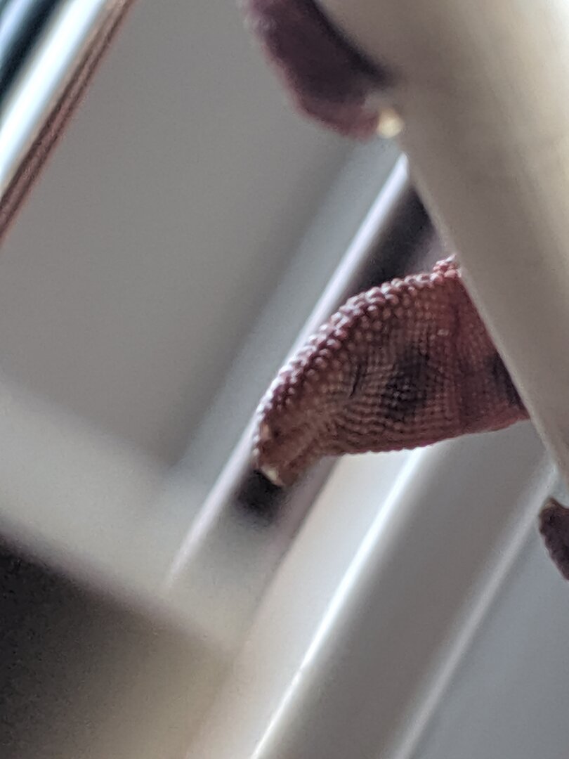 I'm thinking fungal infection maybe? I had wood in his cage but it was for a desert viv and went moldy, so most vines that he sits on are fake so wont wick away water? Its why I'm trying to reduce humidity/ water levels. Can't remember what the vines in the sitters cage were like but I think the same. Its more the middle of his feet than his toes so I dunno if they are related?