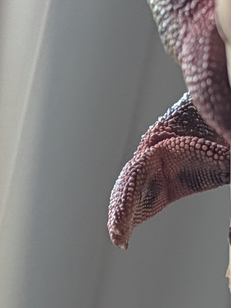 History - I have had a lot of issues with his feet. I've asked for help here before about swollen toes from him damaging his nails on the screen cage. I've taken him to the vets about them multiple times too and all I've been given so far was some anti-inflammatory that didn't do anything. They believe the swelling is due to the way the nail is growing and irritating the toes. It never seemed to cause him any pain or limit his movements prior to now.