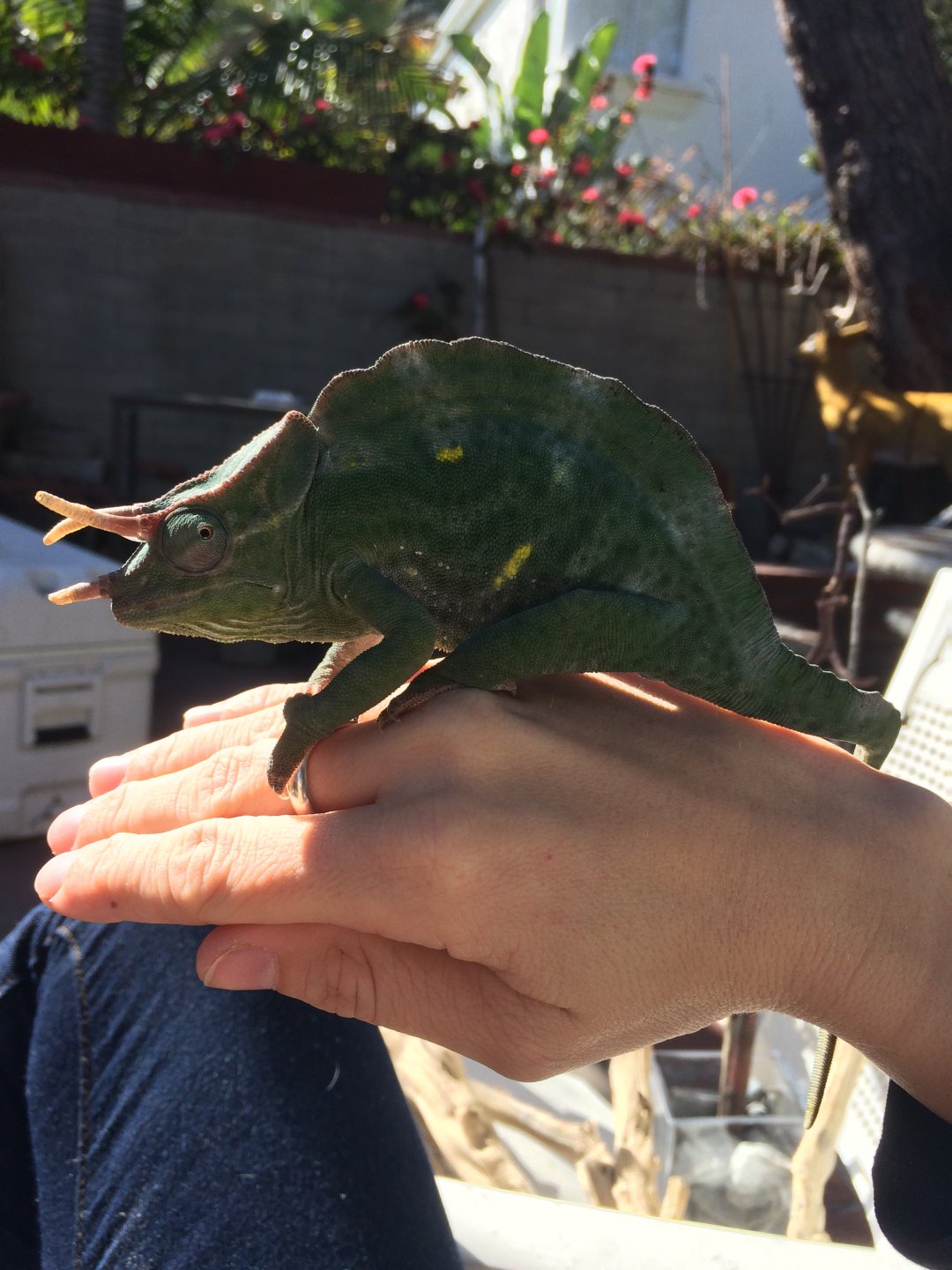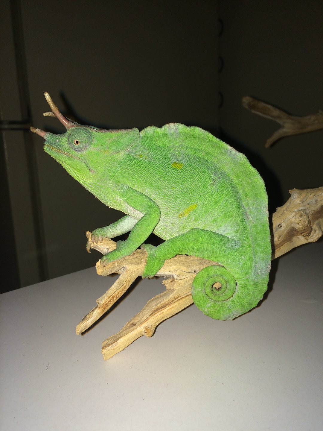 My deremensis has been on a hunger strike since Feb. 5th, I took him to the vet last week where they force fed him in hopes of jump starting his appetite. He has always been a great eater/drinker until recently. Nothing has changed in his habitat and I have tried spicing up his diet but it doesn't seem to be working. Earlier in the week I was able to get two small crickets in him (barley). He seemed to be interested in eating but scared to use his tongue, so I ended up putting them about 1 cm away from his mouth and slipped them onto his tongue when he opened slightly. The vet check out his mouth and found no issues. Tomorrow I am going in to learn how to force feed him but I am very nervous. My cham is a total mama's boy and I have only been nothing but gentle to him. I am afraid of constantly stressing him out daily with food (but I know he needs the nutrition). I was wondering if anyone on here has had success in force feeding leading into the cham being able to eat on his own again. He hasn't lost any weight since the food strike but I haven't found a single dropping in his habitat/ I have always hand fed him. I tried leaving food in his habitat but that didn't seem to work either.