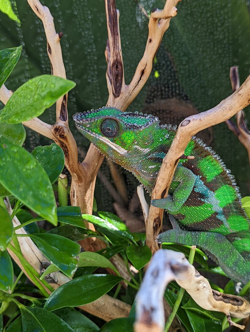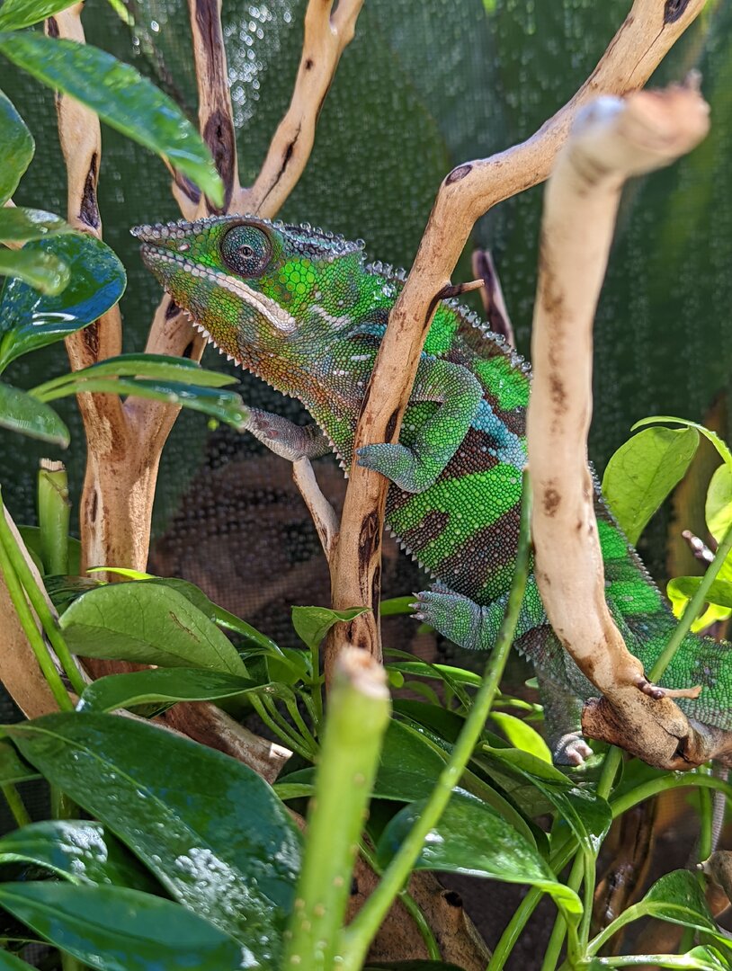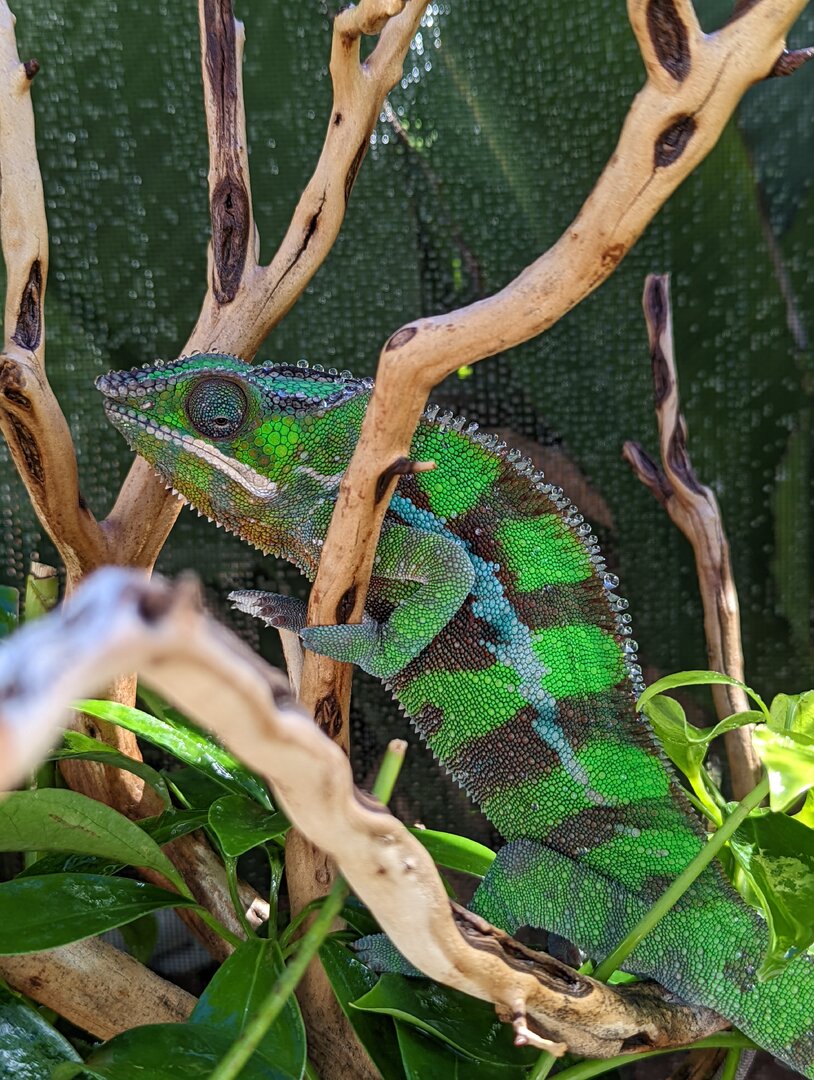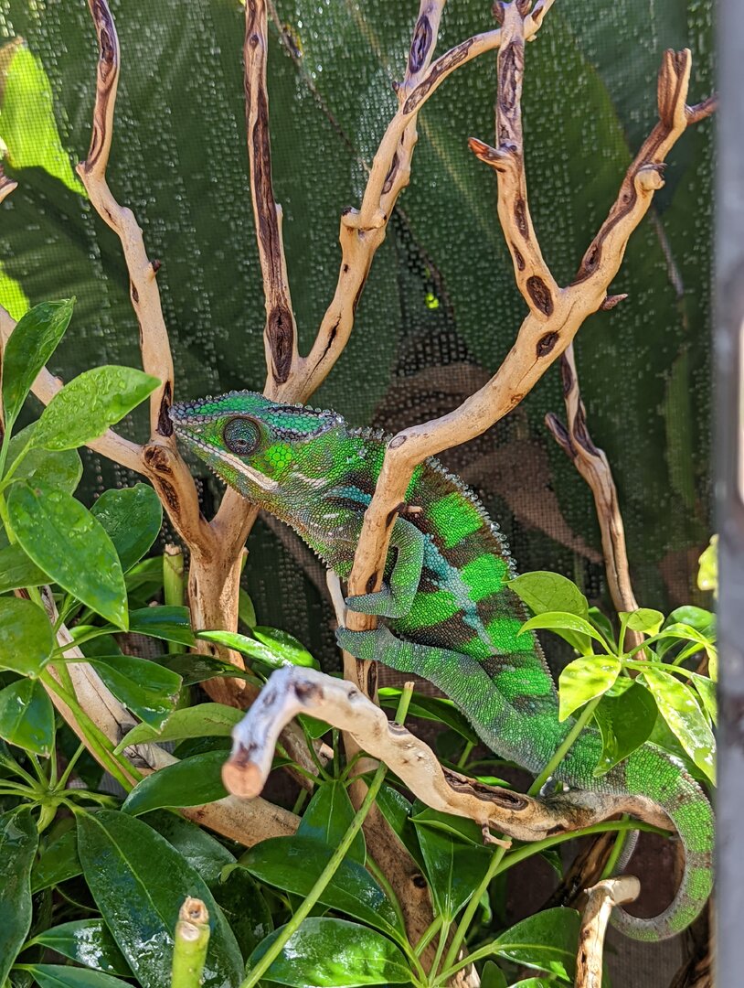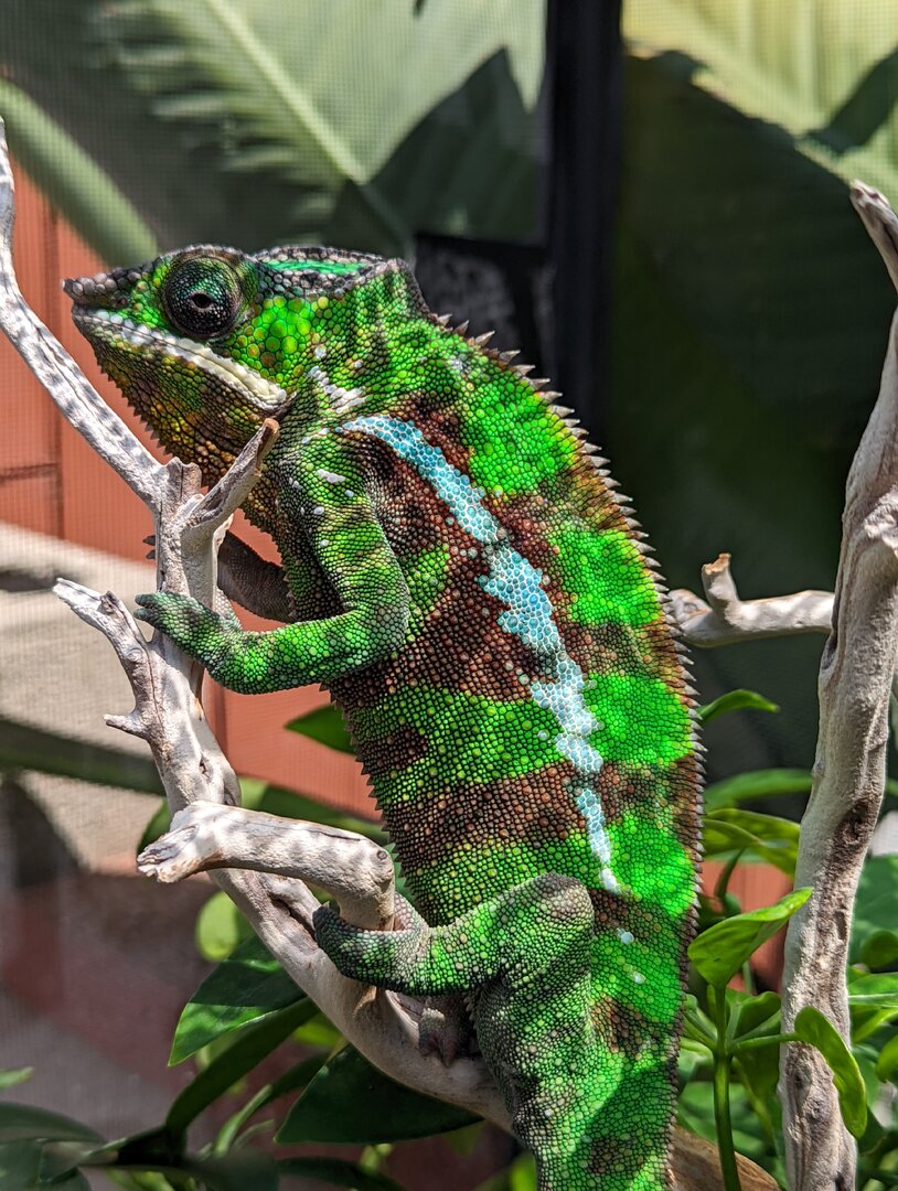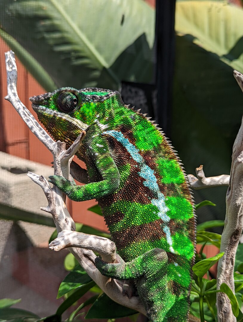 I am looking to re-home my 1 year old male Sambava panther chameleon, locally in the Los Angeles, CA area (pick up only, not considering shipping at this time). He is a Kammerflage Kreations baby (parents are Uhtred x Lagertha hatched Sept-Oct 2021)