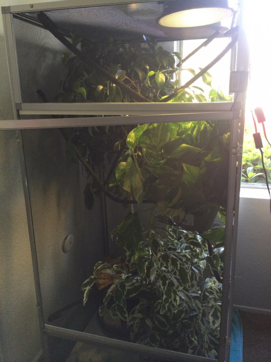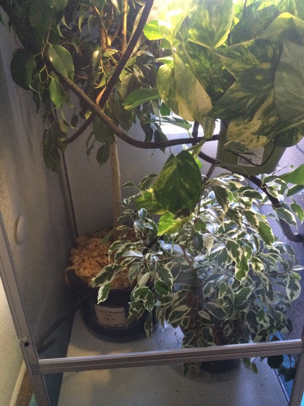 Hi! I have had my panther cham for about a week and the only way he will eat is out of my hand (He is two years old). I would like to free roam some bugs but fear they will hang out in the bottom of the cage where he never goes- I am afraid he will not see them. Does anyone have any suggestions? I am stuck hand feeding and cup feeding?